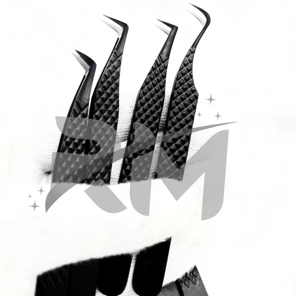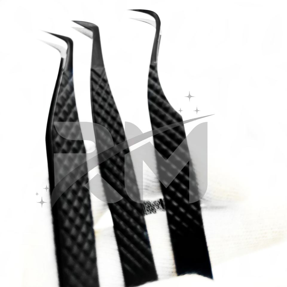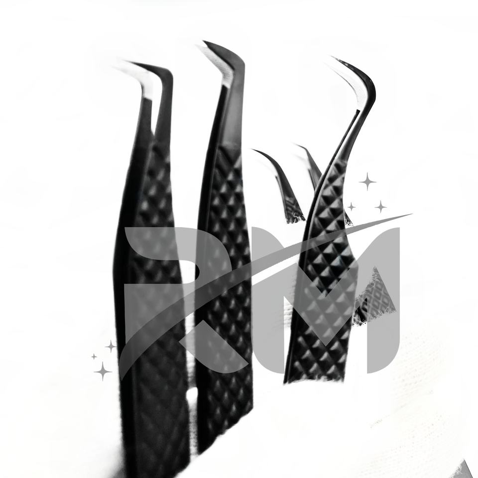 RMI Fiber Tip Eyelash Extension Tweezer Big Kit Black Plasma Tip And Black Powder Coated Eyelash Tweezer Set