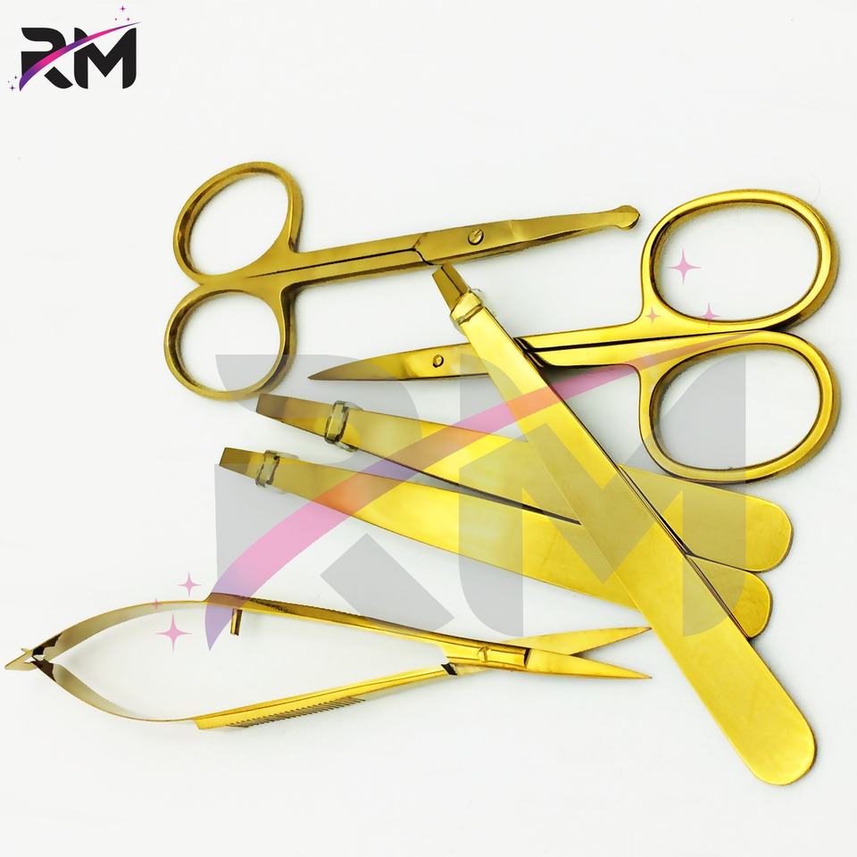 RMI ชุดกรรไกรตัดคิ้วสีทองพร้อมกรรไกรตัดหนังกำพร้าและจมูก2ชิ้น