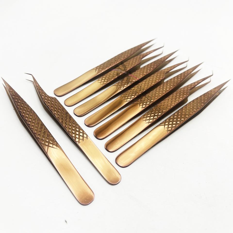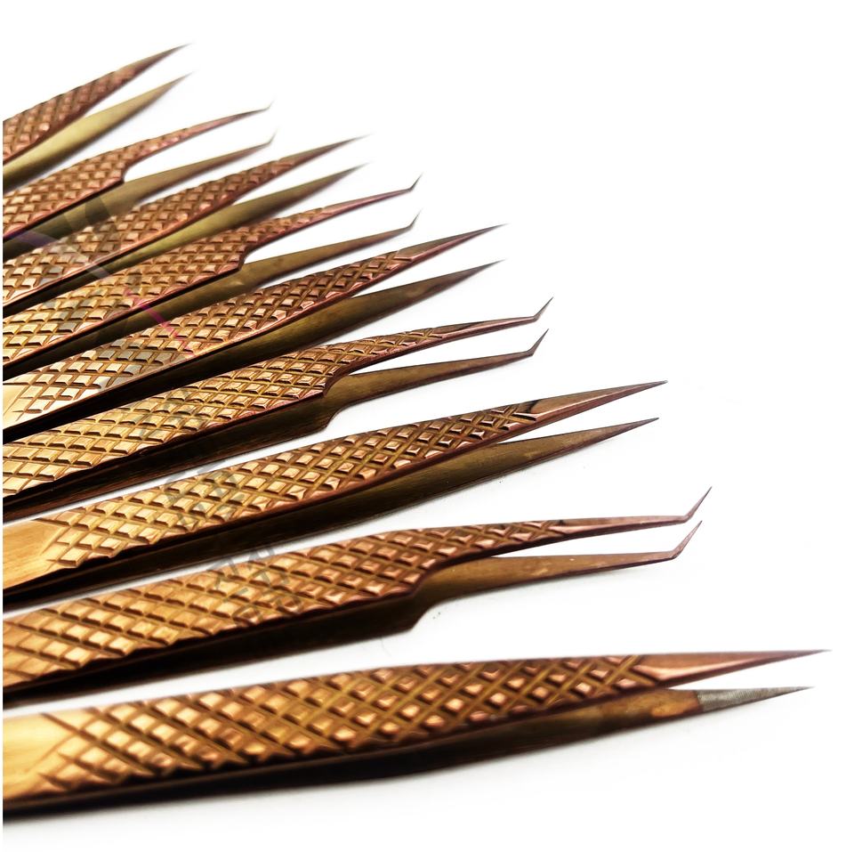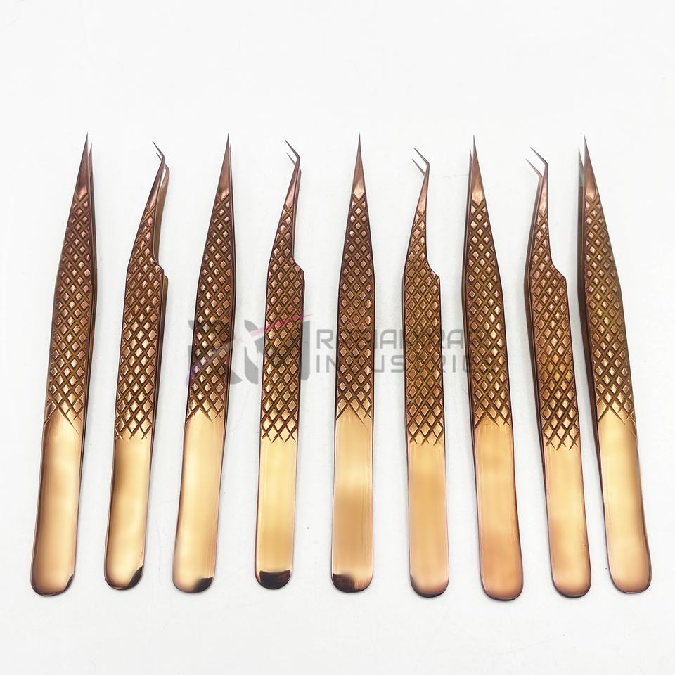 แหนบต่อขนตา RMI Shin สีโรสโกลด์พลาสม่า ปลายตรงและปลายงอ 45 องศา ทำจากสแตนเลสสตีล ด้ามจับแบบเพชร
