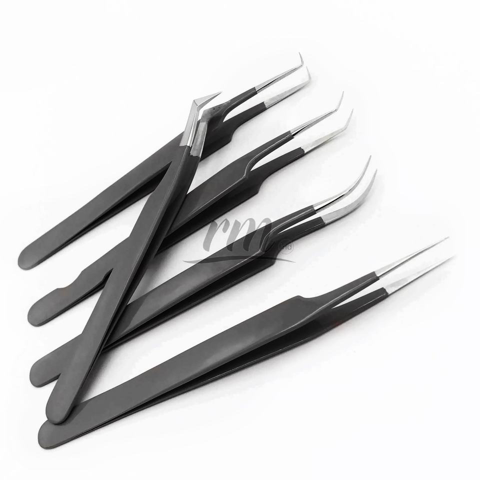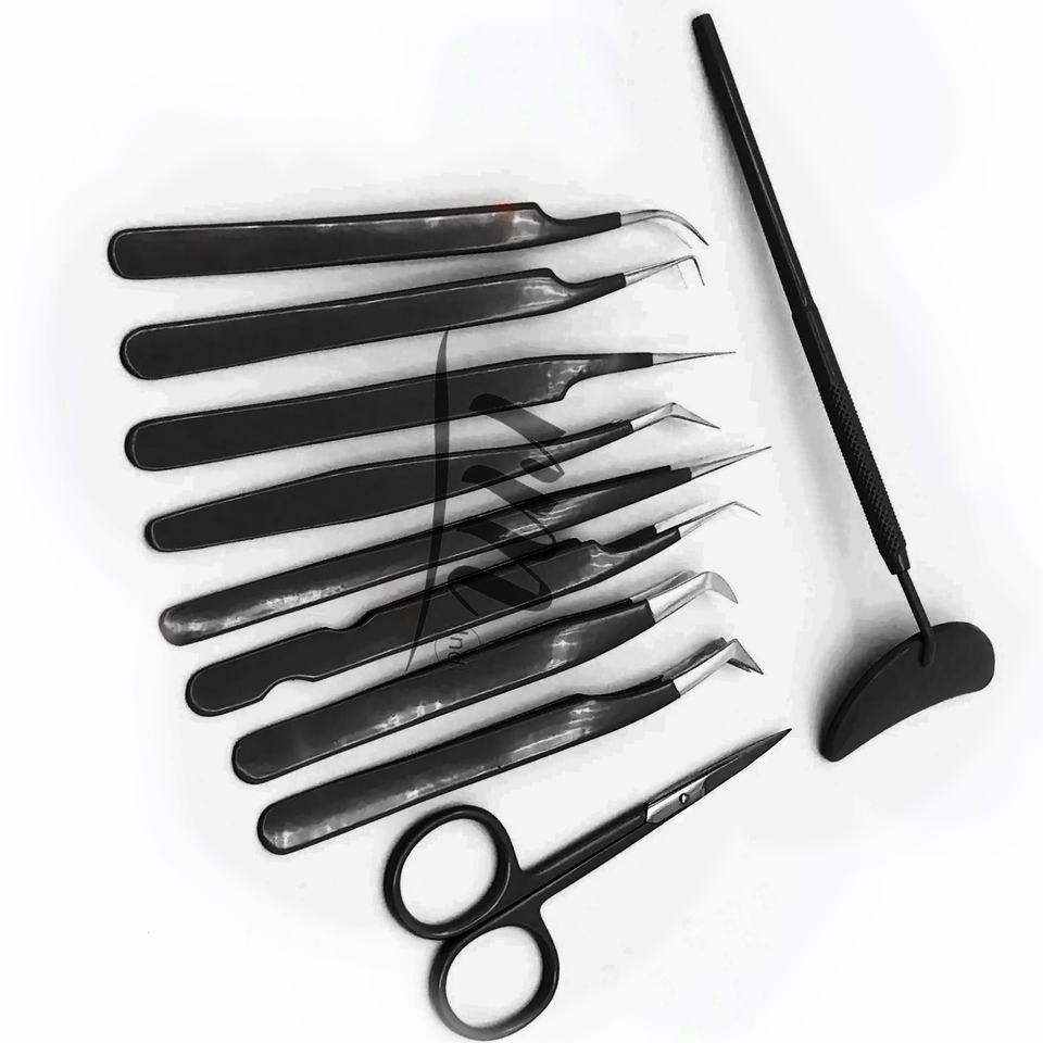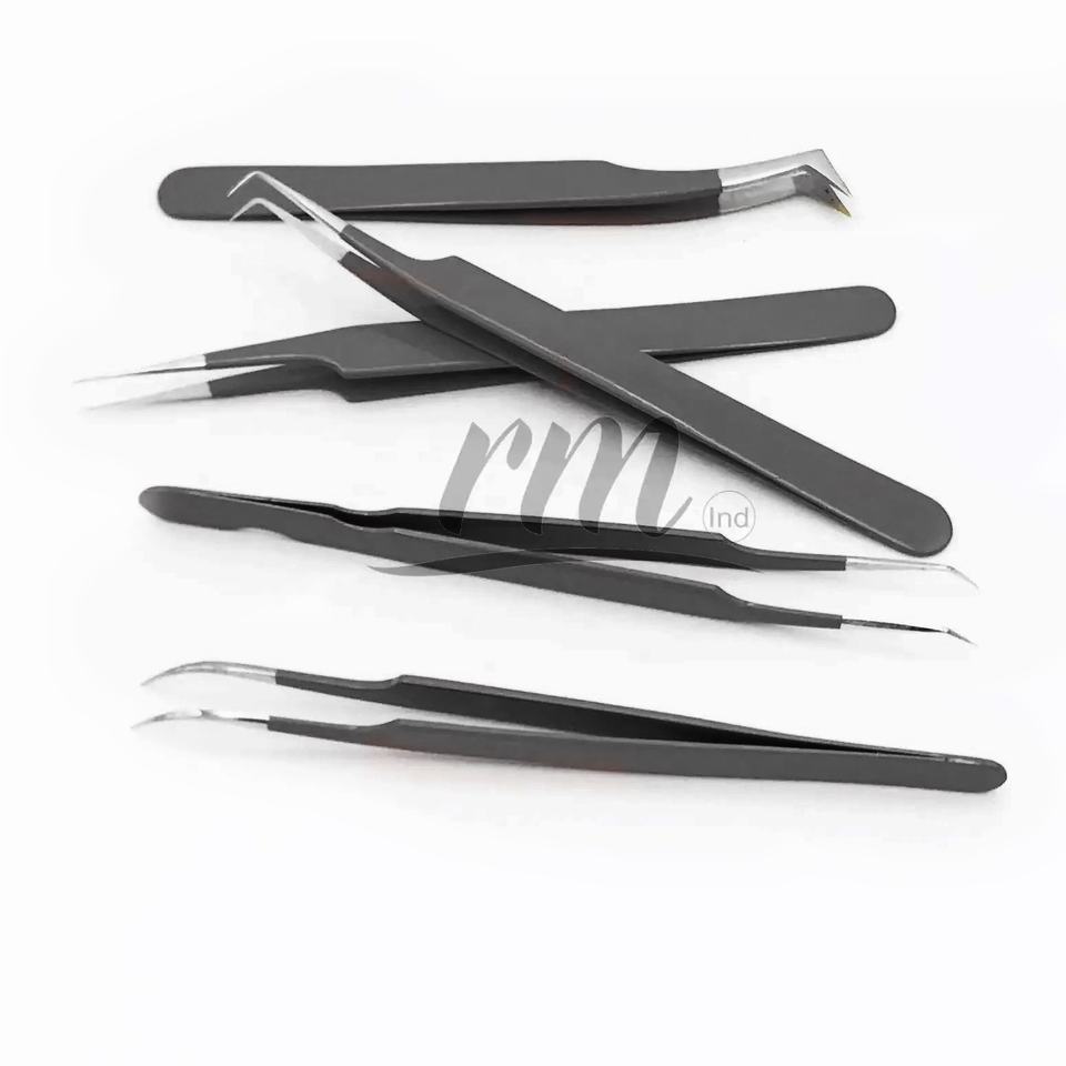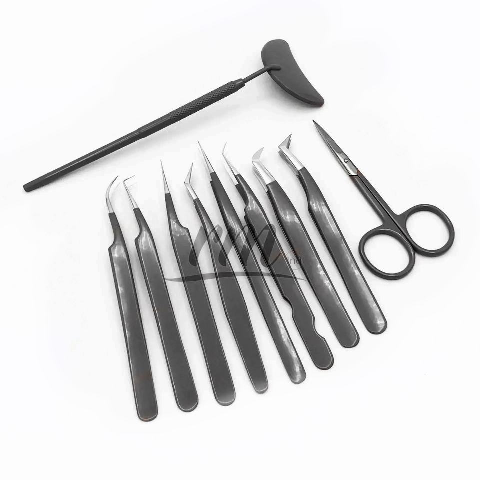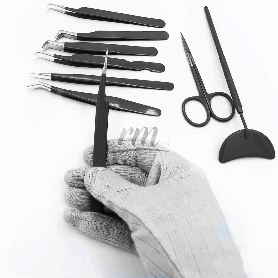 RMI ชุดกรรไกรสำหรับต่อขนตาเคลือบผงสีดำพร้อมกรรไกรตัดหนังและชุดกระจกขนตา