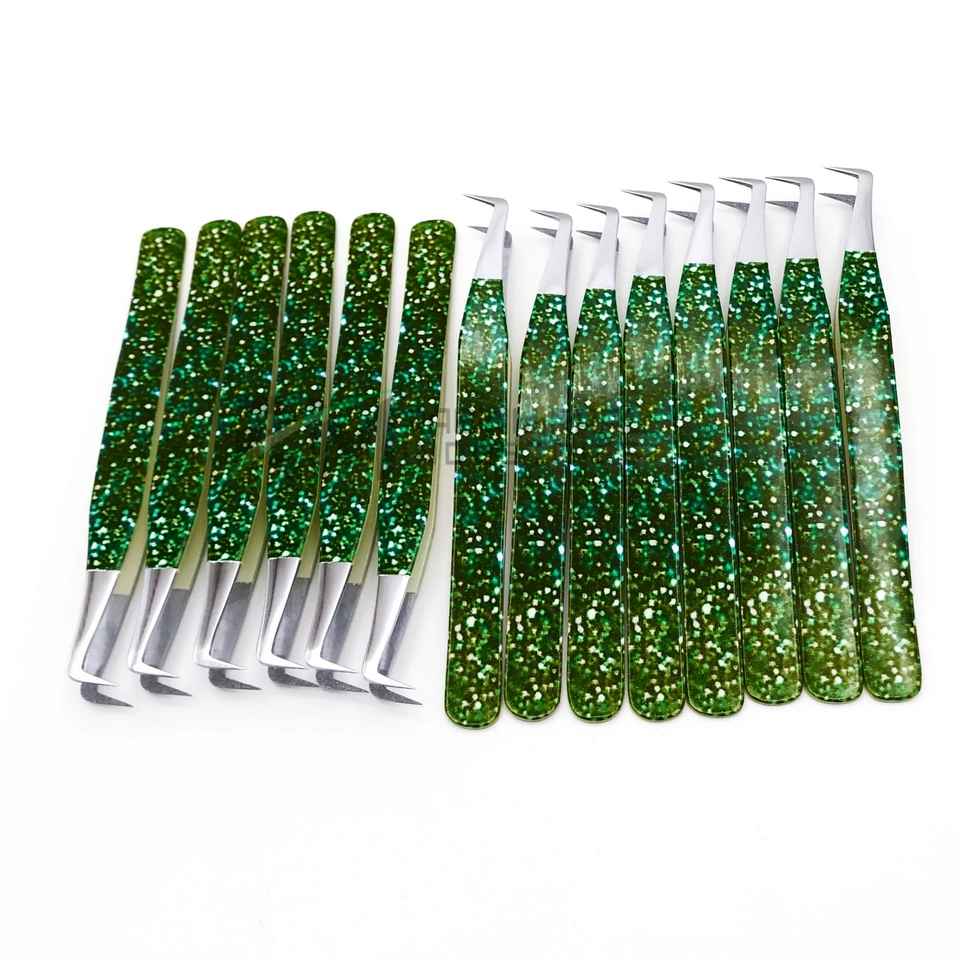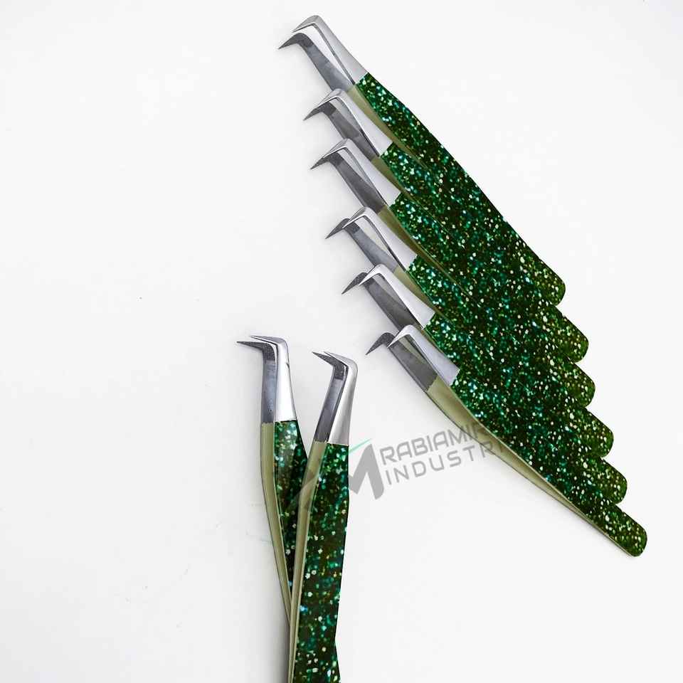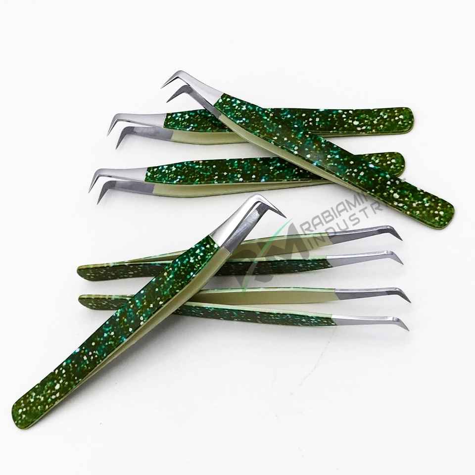 แหนบต่อขนตาคุณภาพสูง RMI ปลายเพชร ปลายเงิน และด้ามจับเคลือบกระดาษสีเขียว วัสดุอย่างดีสำหรับต่อขนตา
