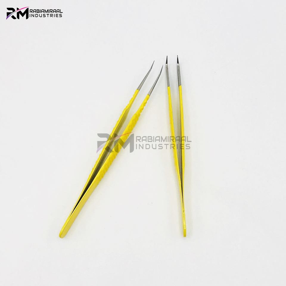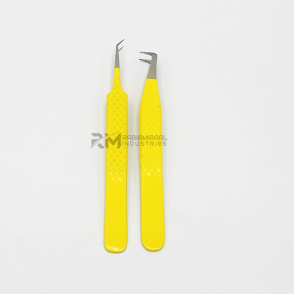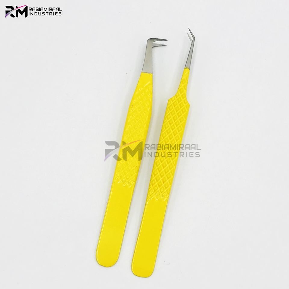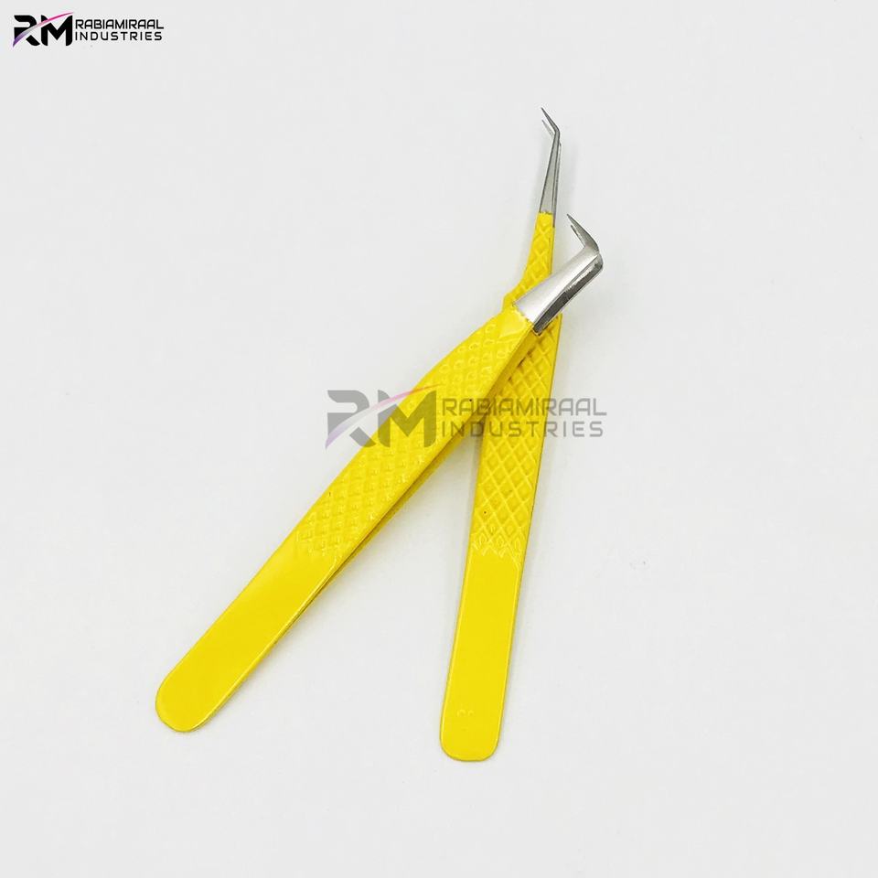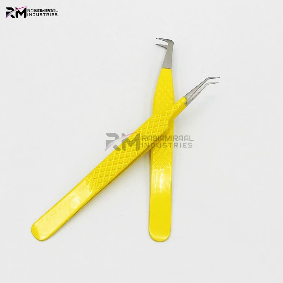ชุดแหนบต่อขนตาจับขนตาสแตนเลสผลิตภัณฑ์อันดับสูงสุดของ RMI ปลายเงินและเคลือบผงสีเหลือง