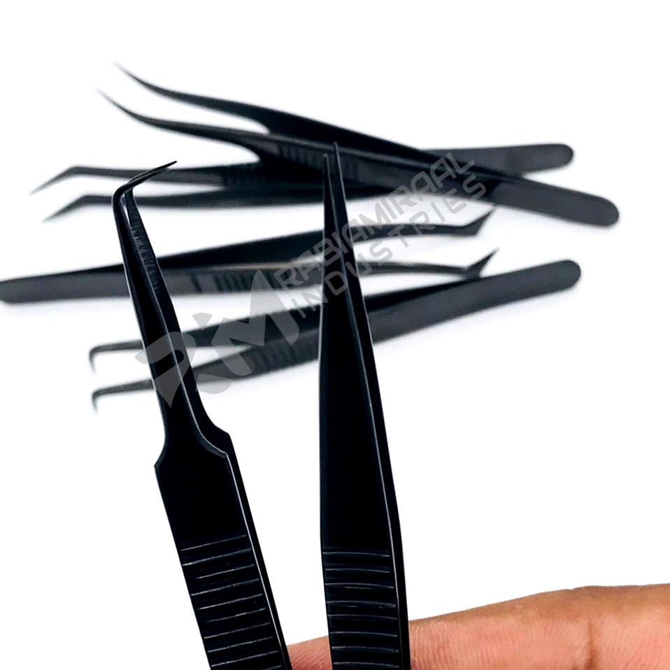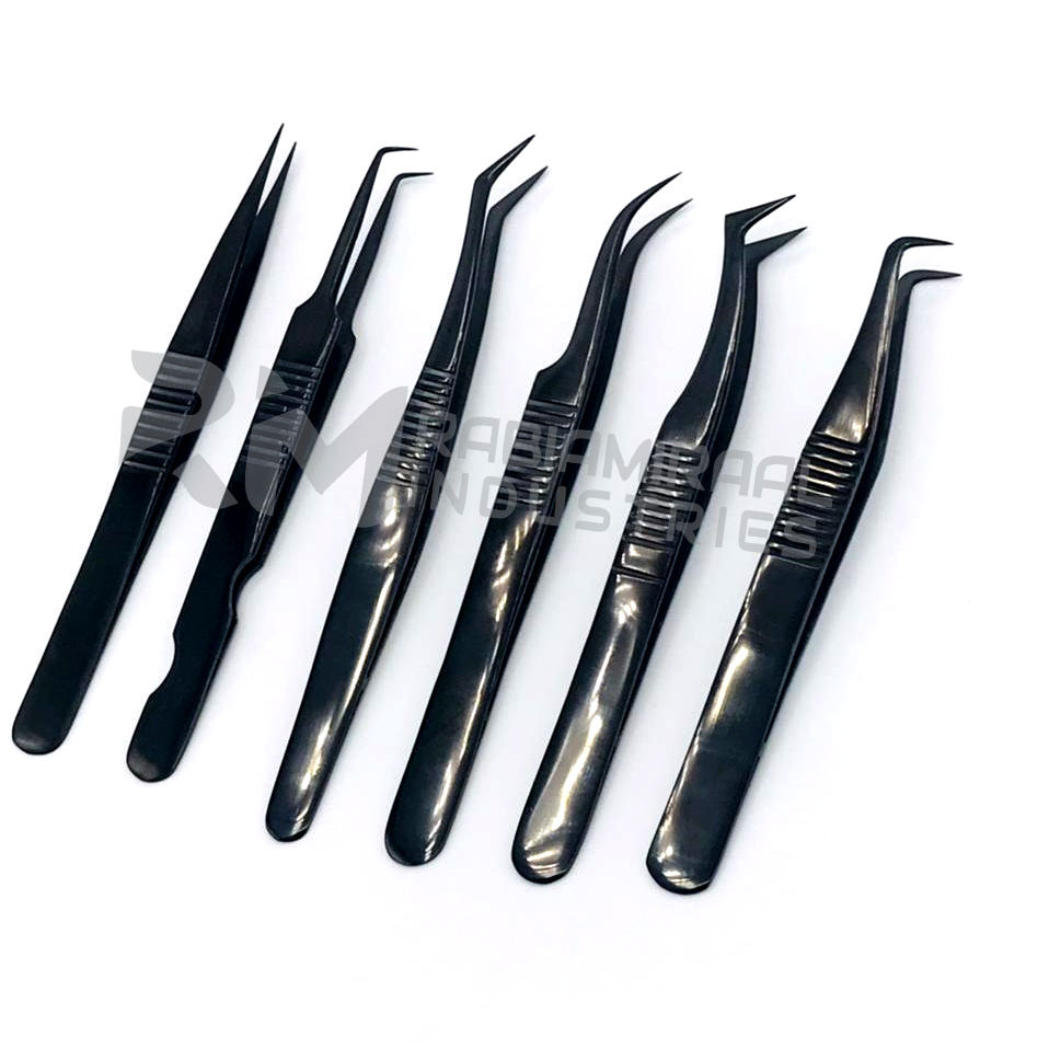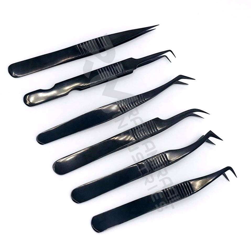 RMI แหนบต่อขนตาพร้อมพลาสม่าสีดำทั้งหมดชุดจับดีไซน์ใหม่6ชิ้นโลโก้ที่กำหนดเองเหล็กยั่งยืน