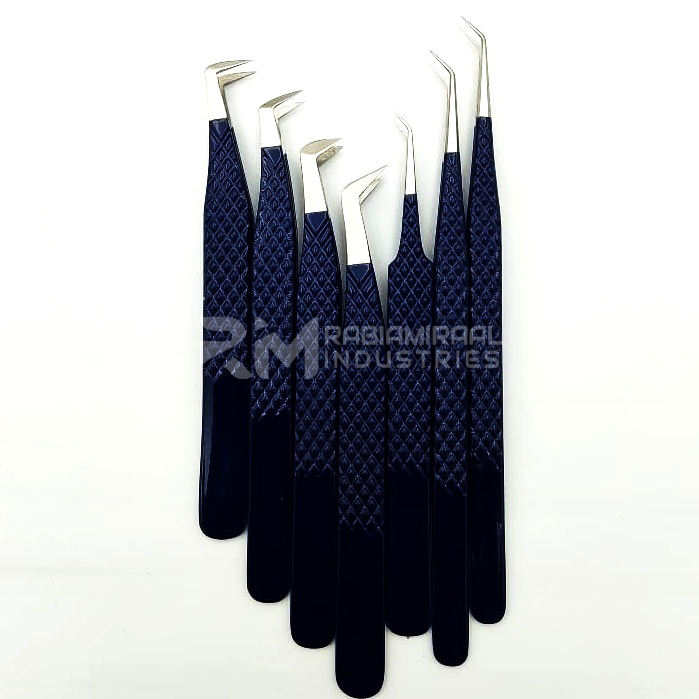 RMI แหนบขนตา90/45/65องศาเคลือบด้วยผงสีฟ้าเข้มพร้อมปลายด้านสีเงินและที่ยึดเพชร