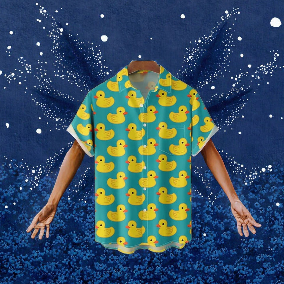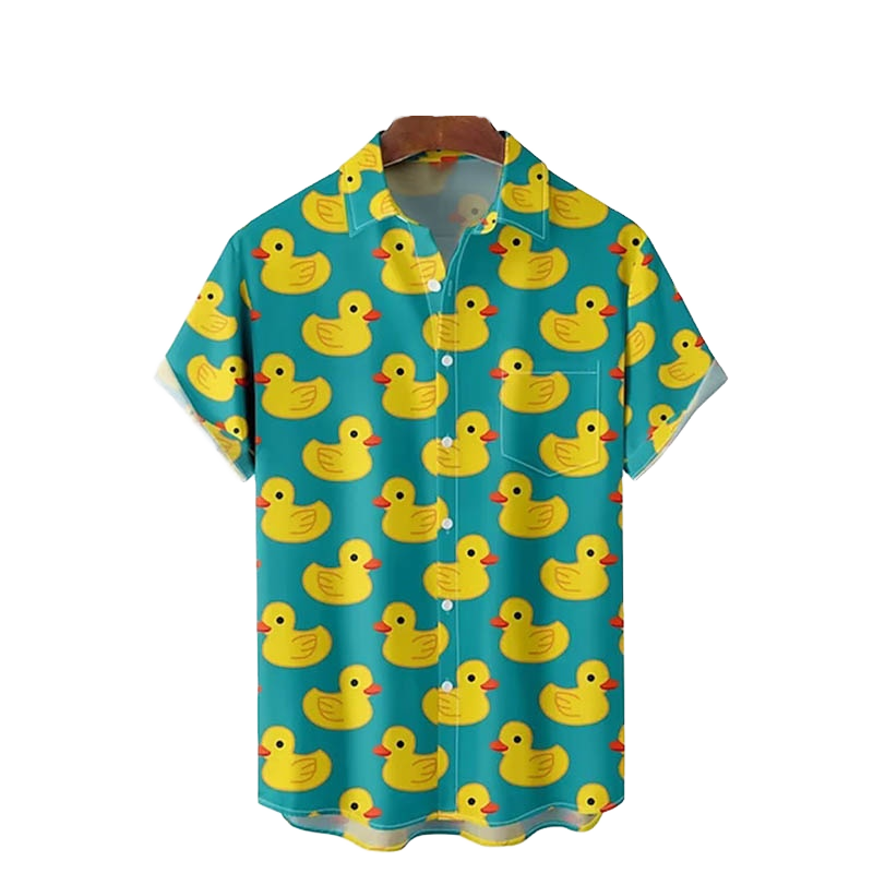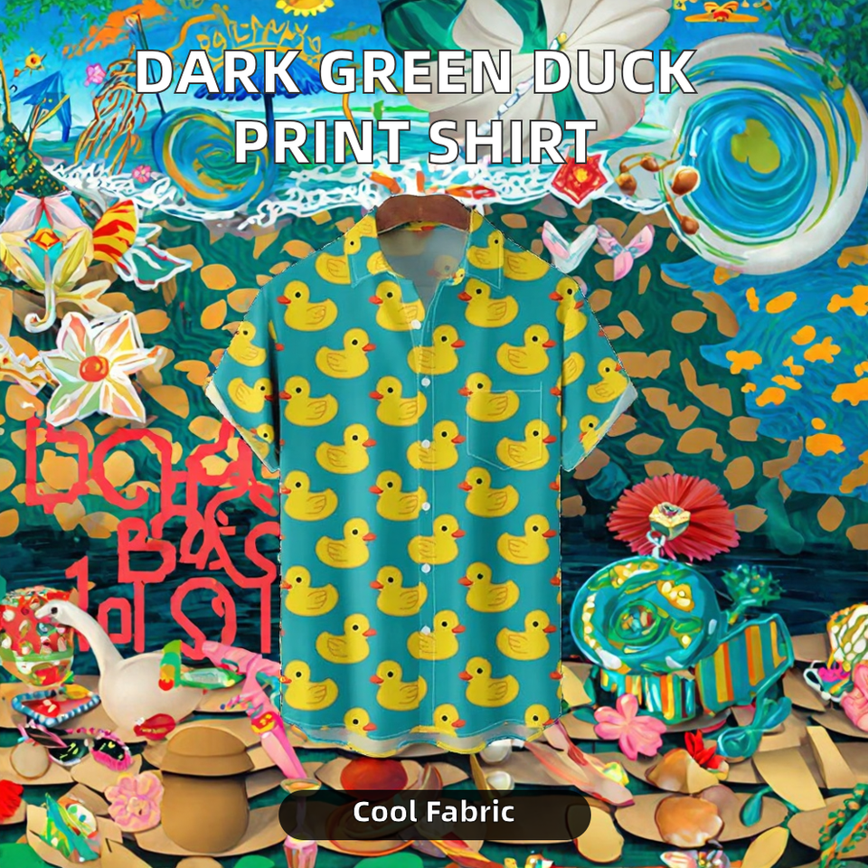 เสื้อฮาวายพิมพ์ลายเป็ดสีเขียวเข้มใหม่จาก RNSHANGER เสื้อเชิ้ตแขนสั้นแบบลำลอง ระบายอากาศได้ดี เหมาะสำหรับฤดูร้อน สำหรับผู้ชายและผู้หญิง