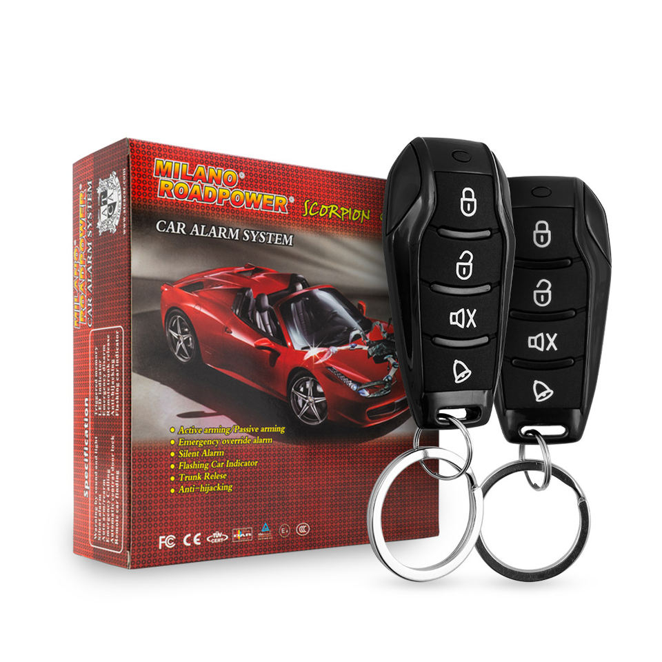 ROADPOWER (RP-RE-SCORP-394) ระบบกันขโมยรถยนต์ Milano Scorpion พร้อมรีโมทคู่ ป้องกันการโจรกรรม & สัญญาณเตือนแบบเงียบ ปลดล็อคฝาท้าย ใช้ได้กับรถยนต์ทั่วไป แรงดันไฟฟ้า 12V
