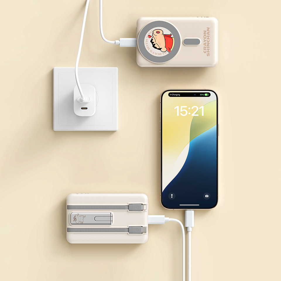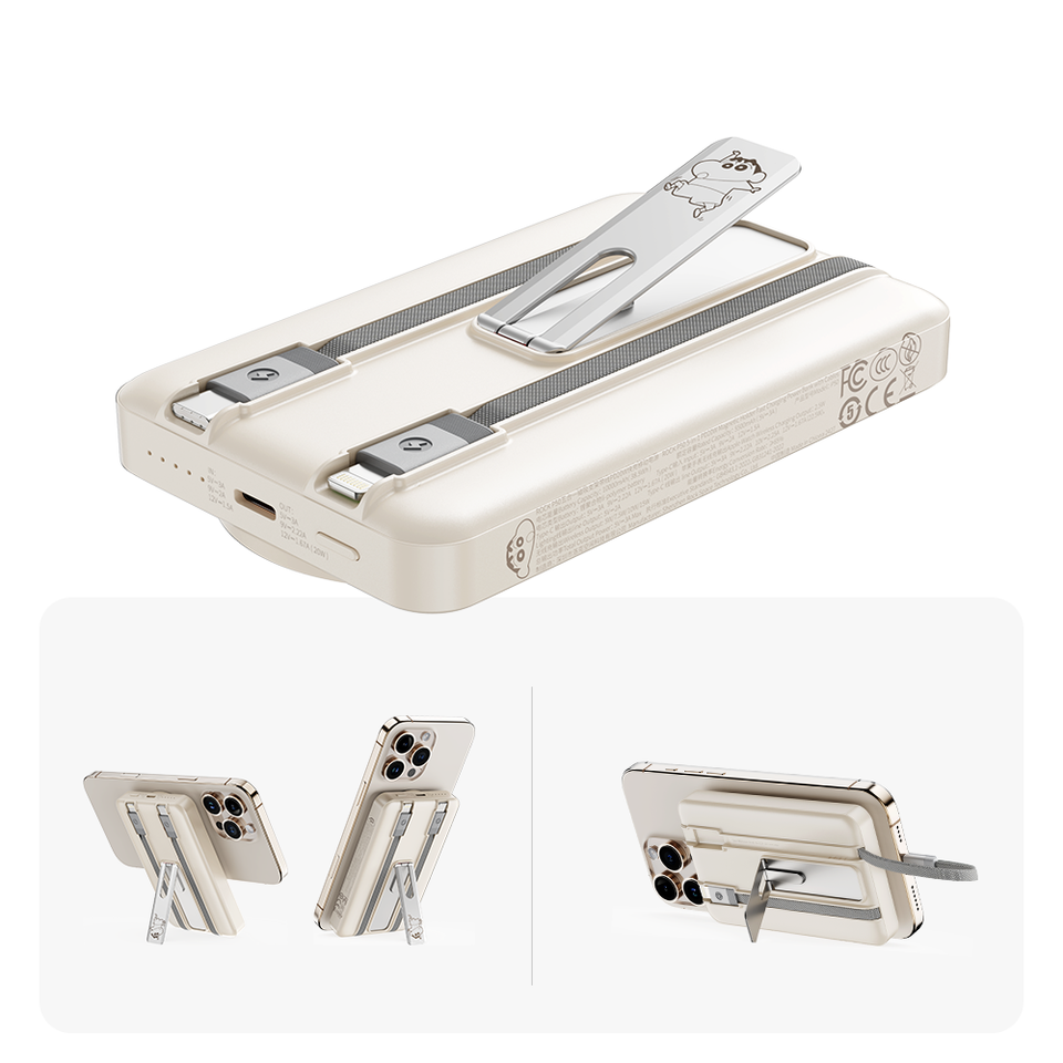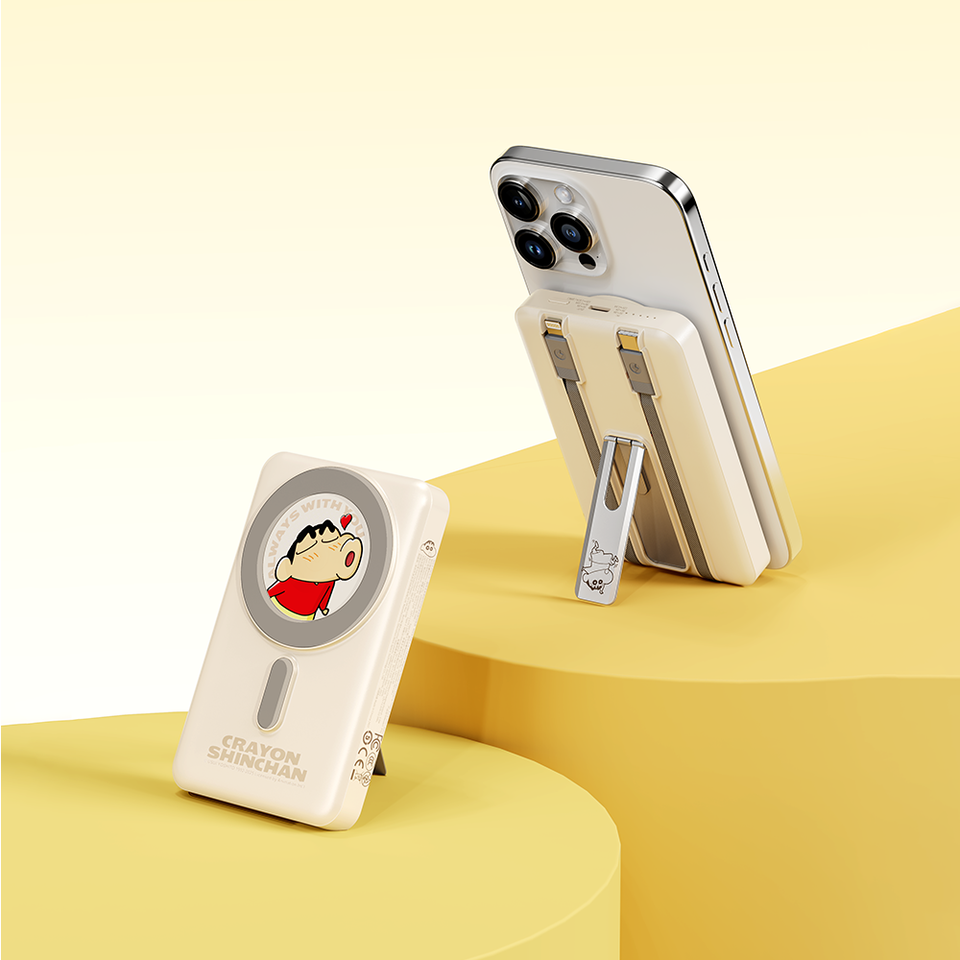 ROCK Crayon Shin-Chan P50ที่ใส่ PD20W แม่เหล็ก5-in-1ที่ชาร์จแบตเตอรี่สำรองพร้อมสายชาร์จ10000mAh สำหรับ Apple Watch