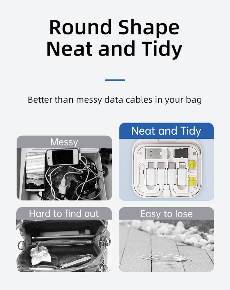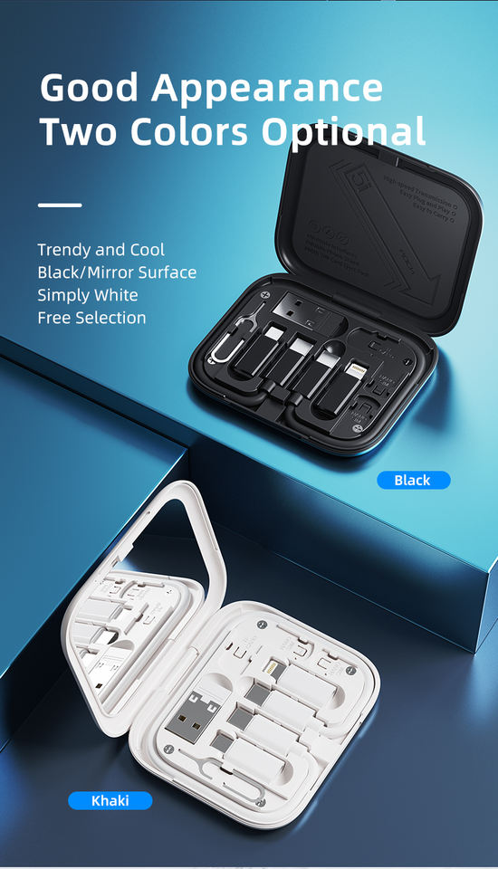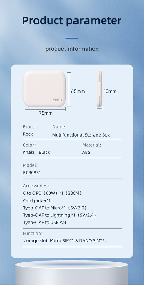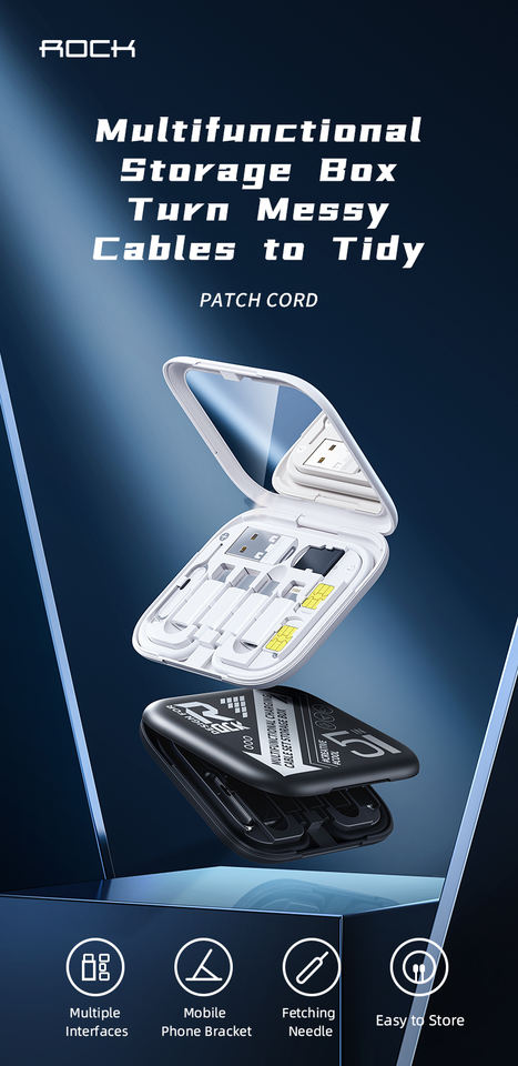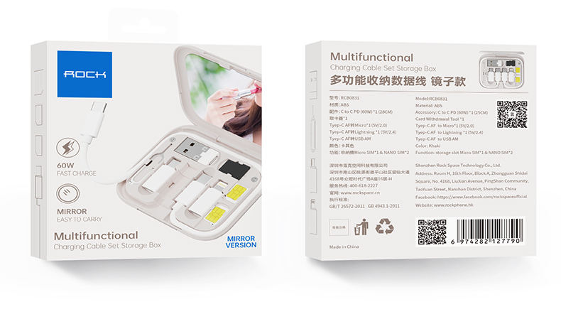 ชุดสายชาร์จมัลติฟังก์ชั่น ROCK PD ชาร์จเร็ว ทองแดงแท้ พร้อมกล่องเก็บของและกระจกสำหรับโทรศัพท์มือถือ