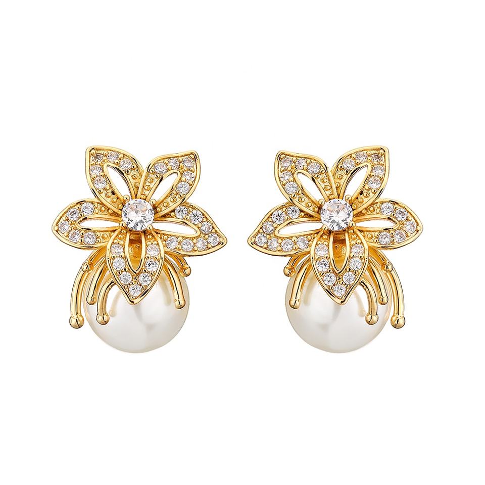 ชื่อหรือคำ:Silver Plated Pearl and Star Zircon Flower Pearl Bridal Earrings