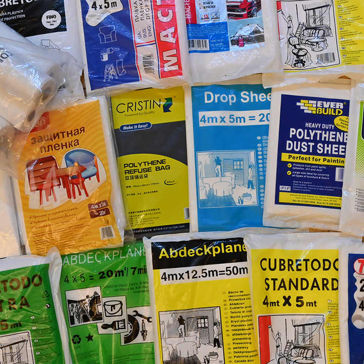 Romwe แผ่นพลาสติก PE ใสแบบเป่าขึ้นรูปผ้านิ่มกันความชื้นกันตกความหนา5mic-200mic สำหรับการทาสีที่บ้าน