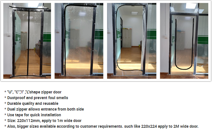 ROMWE ZIPDOOR ประตูกั้นฝุ่นพร้อมซิปคู่ LDPE/ผ้าฟลีซกันความชื้น โปร่งใส รุ่นนุ่ม ZD120220-I/L/C/U