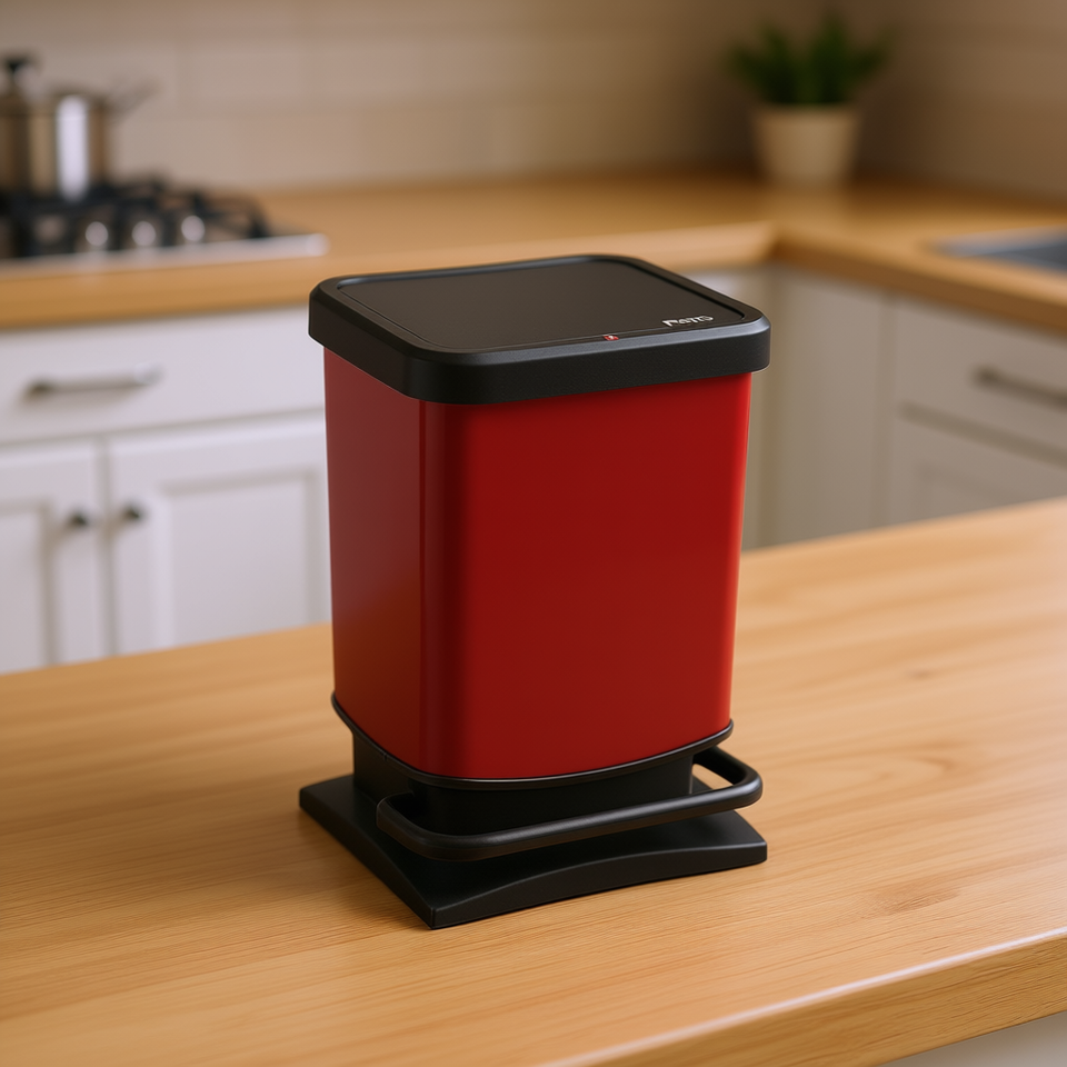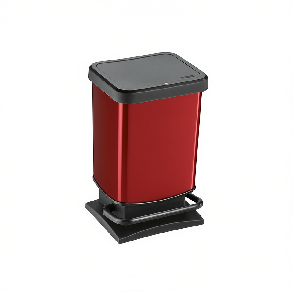 ถังขยะ ROTHO Paso Step ขนาด 10 ลิตร สีแดง ฝาสีดำ พร้อมแป้นเหยียบ สำหรับใช้ในห้องครัวและห้องน้ำ