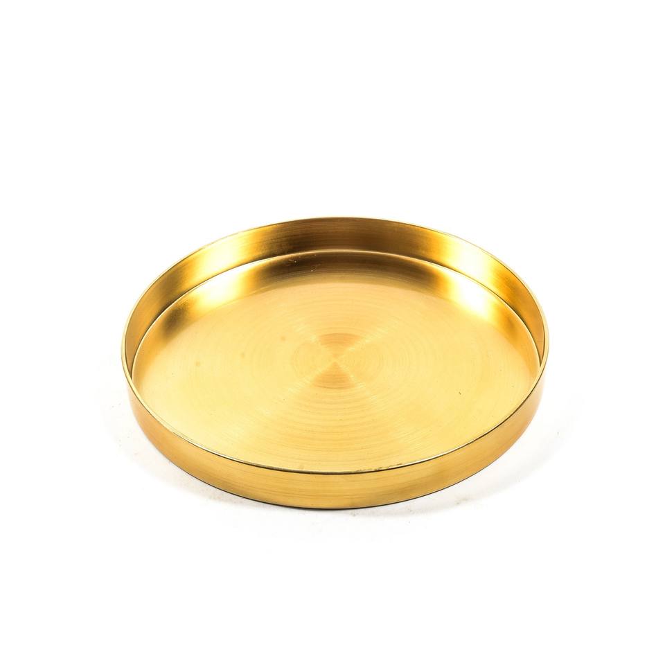 ถาดพลาสติกทรงกลม สีทองเงา เส้นผ่านศูนย์กลาง 27 ซม. สูง 3 ซม.
