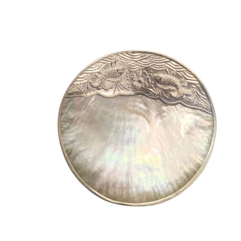 จานเปลือกหอยทรงกลมเคลือบเงิน ชุดหรูหรา จาน/ถาด/ถ้วยทรงกลมเปลือกหอยมุกสีทอง ตกแต่งเรียบง่าย