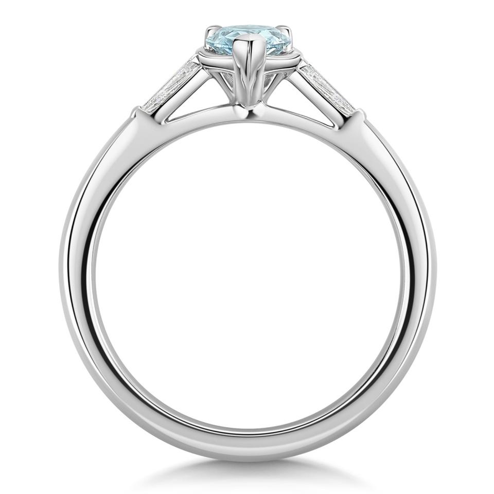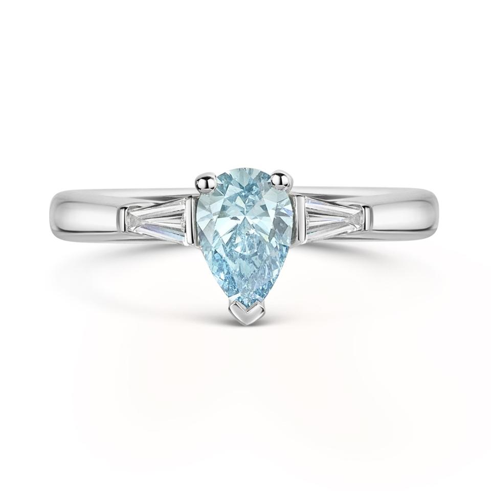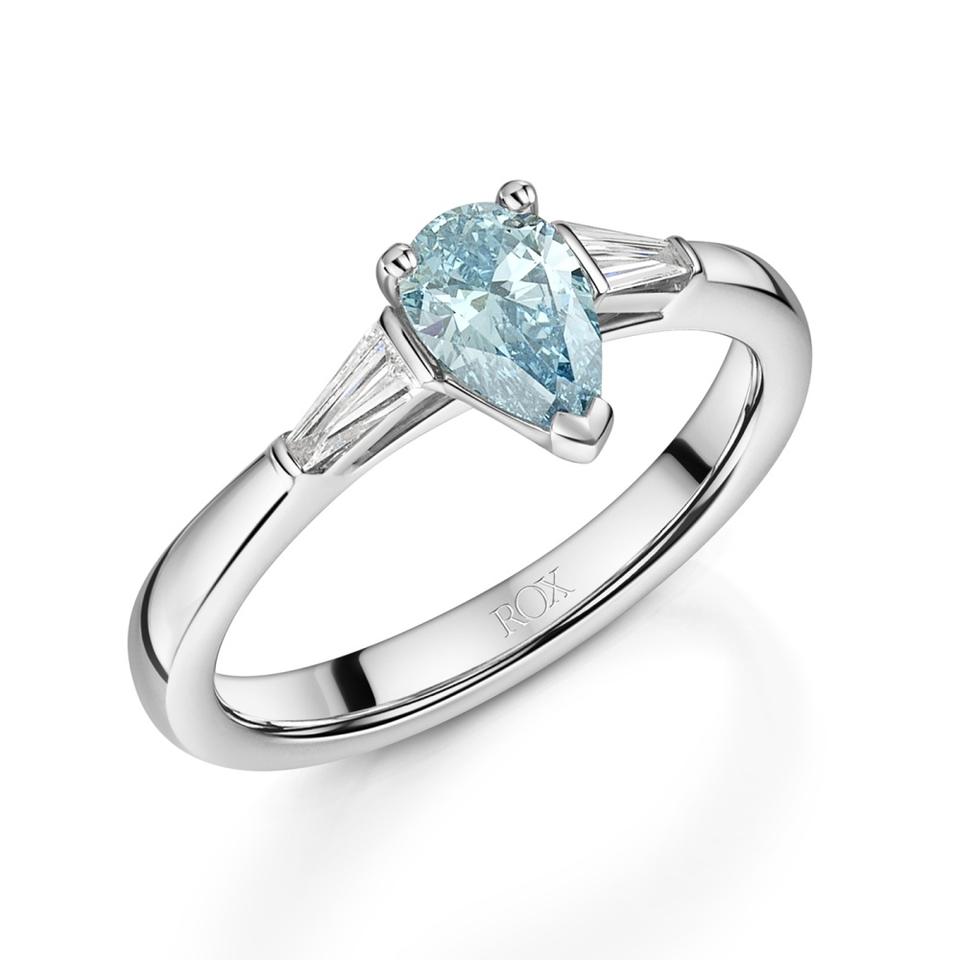 แหวนเพชรแล็บสีฟ้า ROX Pear พร้อมเพชรทรงบาแกตต์ Minded