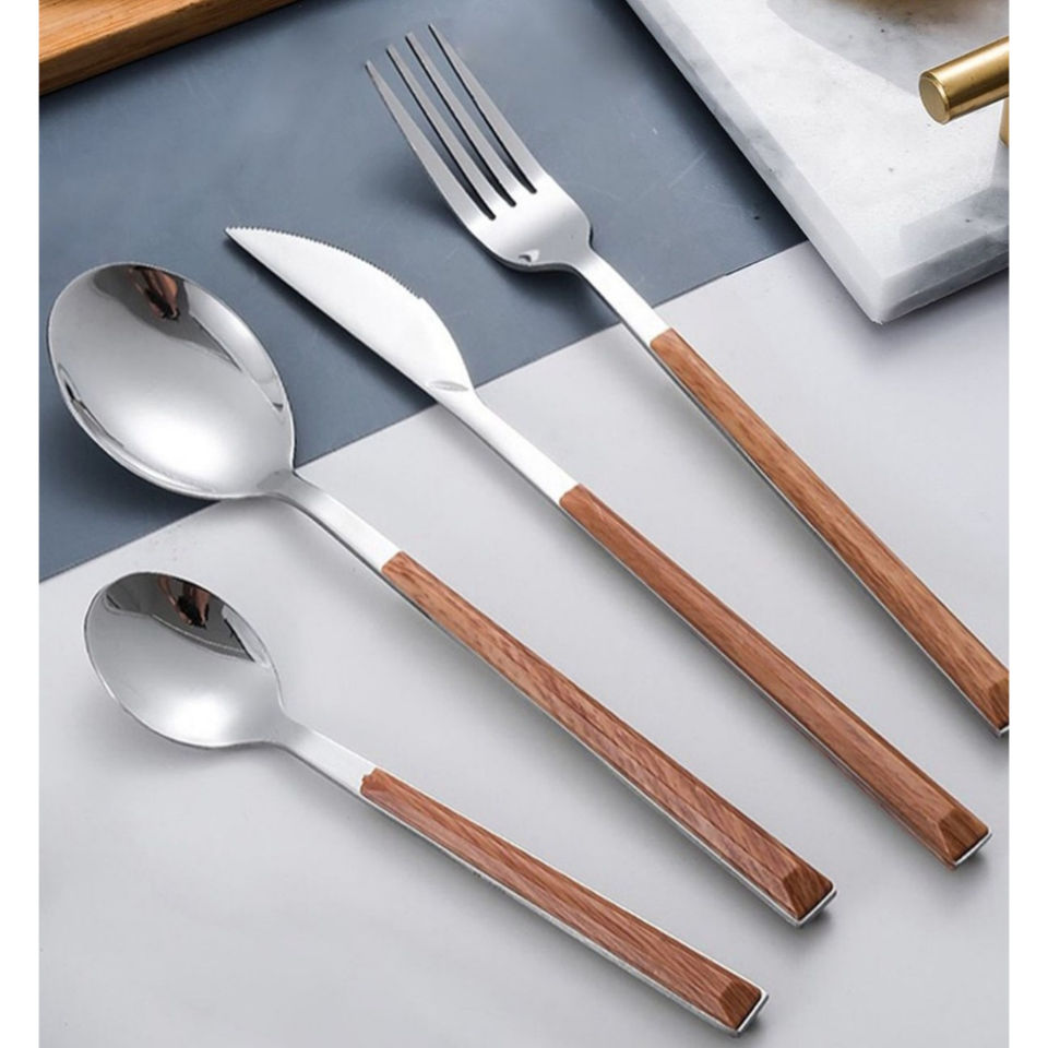ชุดช้อนส้อมสแตนเลสสตีลทันสมัย ROYAL HOME COLLECTION พร้อมด้ามจับไม้ ขัดเงาอย่างดี สำหรับงานเลี้ยงและใช้ในครัว