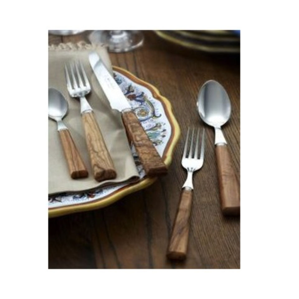 ROYAL HOME COLLECTION Modern Stainless Steel Cutlery Set Mirror Polish Durable Natural Olive Wood Flatware Tableware