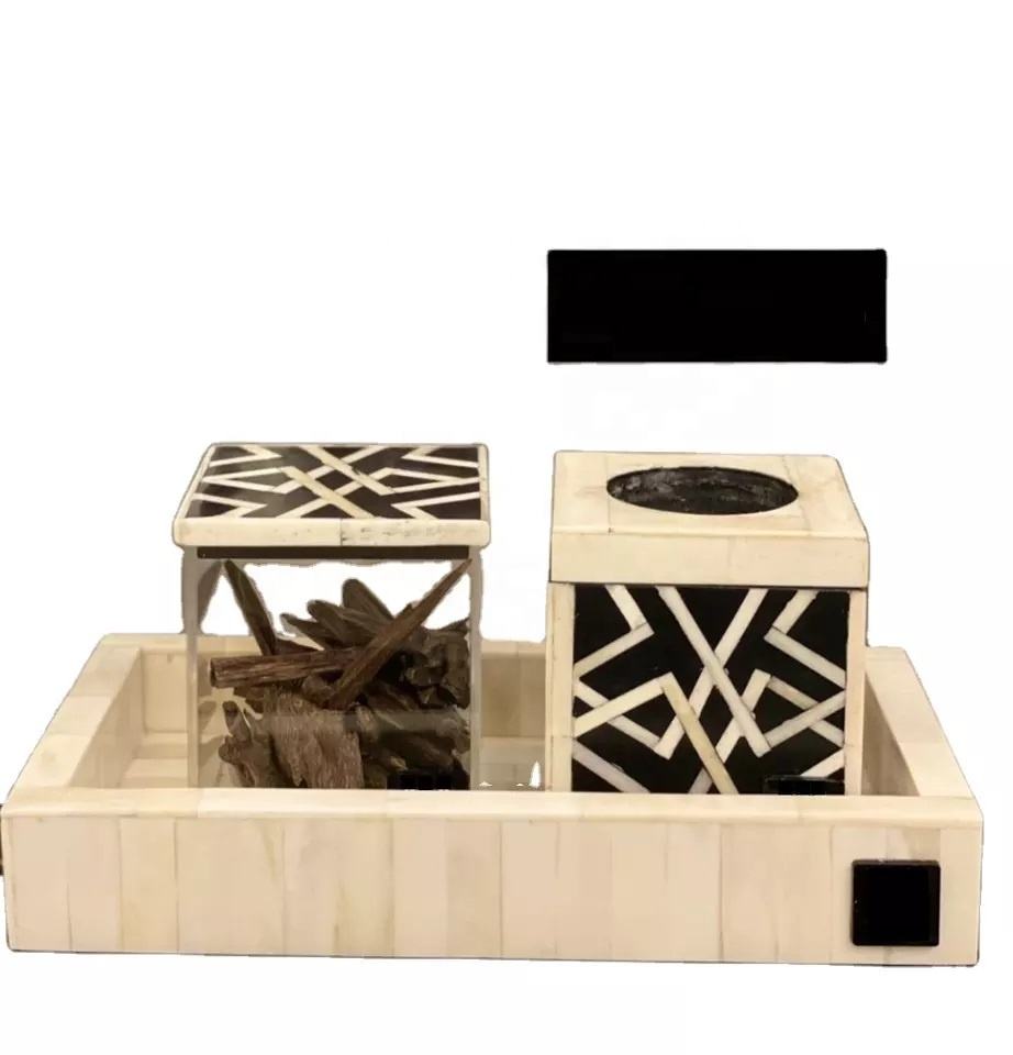 Handcrafted Resin Bakhoor Burner Tray Box Set Decorative Arabic Style Incense Holder and Storage Box for Home Fragrance &Gifting