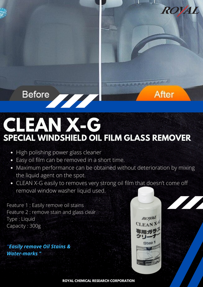 น้ำยาทำความสะอาดกระจก ROYAL X-G SPECIAL CAR CARE ขจัดคราบน้ำมันและคราบน้ำได้อย่างมีประสิทธิภาพ ขนาด 300 มล./650 มล./800 มล.