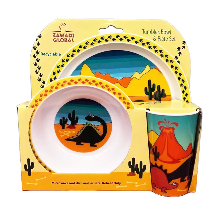 ชุดจานอาหารเด็ก ลายสัตว์น่ารัก 3 ชิ้น รุ่นขายดีของ RPP ชุดจานอาหารพลาสติกทรงกลมสำหรับใช้ในบ้าน