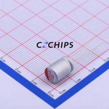 ตัวเก็บประจุแบบแข็ง RR71C680MDN1 แบบ Through-hole (THT), ขนาด D8xL11.5 มม. 68uF 20% 16V 5.6A 100kHz