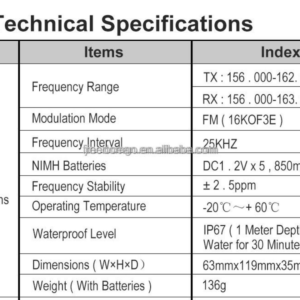 ช่วงความถี่:TX: 156.000-162.000MHz, RX: 156.000-163.275MHz