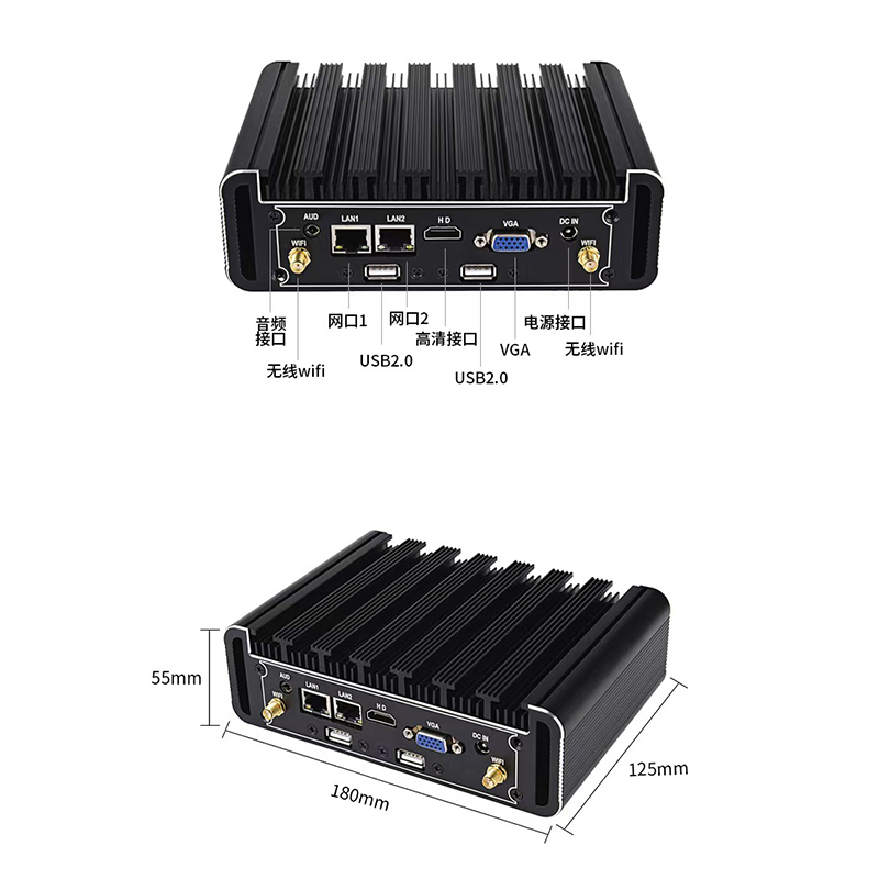 RS232 RS485รองรับพอร์ต USB 2พอร์ตความคมชัดสูงคอมพิวเตอร์มินิพีซีพกพาสะดวก OEM รุ่นที่ประหยัดพัดลมสำหรับอุตสาหกรรม
