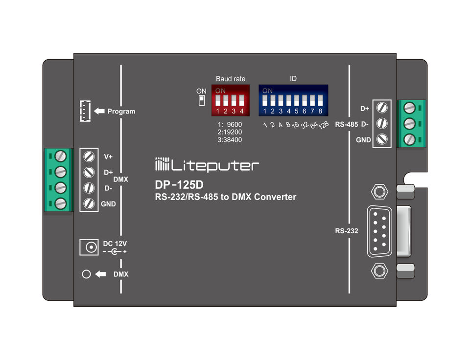 ตัวแปลง Liteputer RS232 RS-485 เป็น DMX512 - สวิตช์แบบแมนนวล พร้อมการรับประกัน 1 ปี ผลิตในไต้หวัน