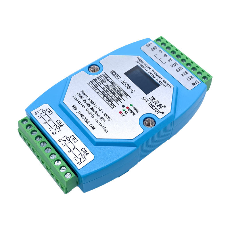 RS36-C เครื่องส่งสัญญาณอุณหภูมิเทอร์โมคัปเปิล PT100/K-Type 4ช่องสัญญาณพร้อมสัญญาณเตือนและการควบคุมเอาต์พุตสี่รีเลย์