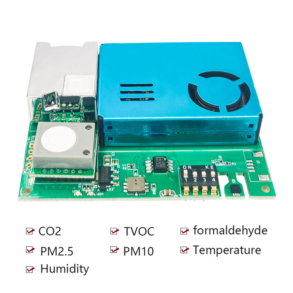 RS485 UART เอาต์พุตโมดูลเซ็นเซอร์คุณภาพอากาศ 7 ใน 1 PM2.5 โมดูลเซ็นเซอร์ฝุ่นพร้อมความชื้นและอุณหภูมิ
