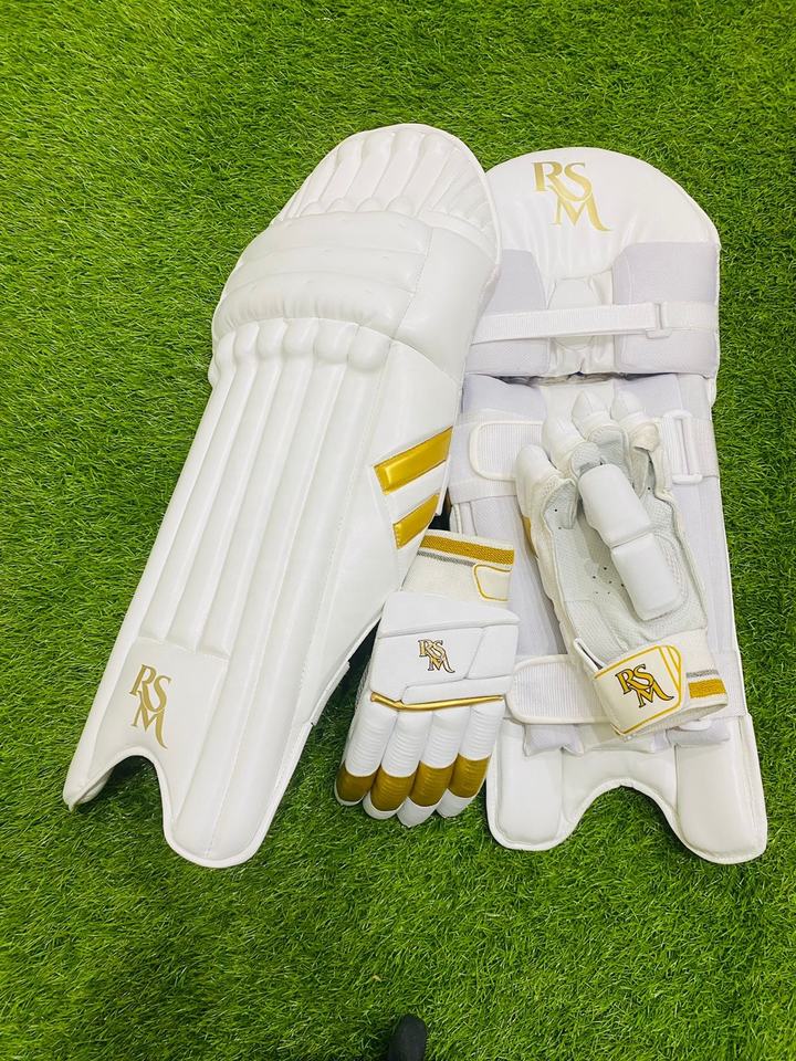 อุปกรณ์คริกเก็ต RSM ยามขาสีทองและสีขาว