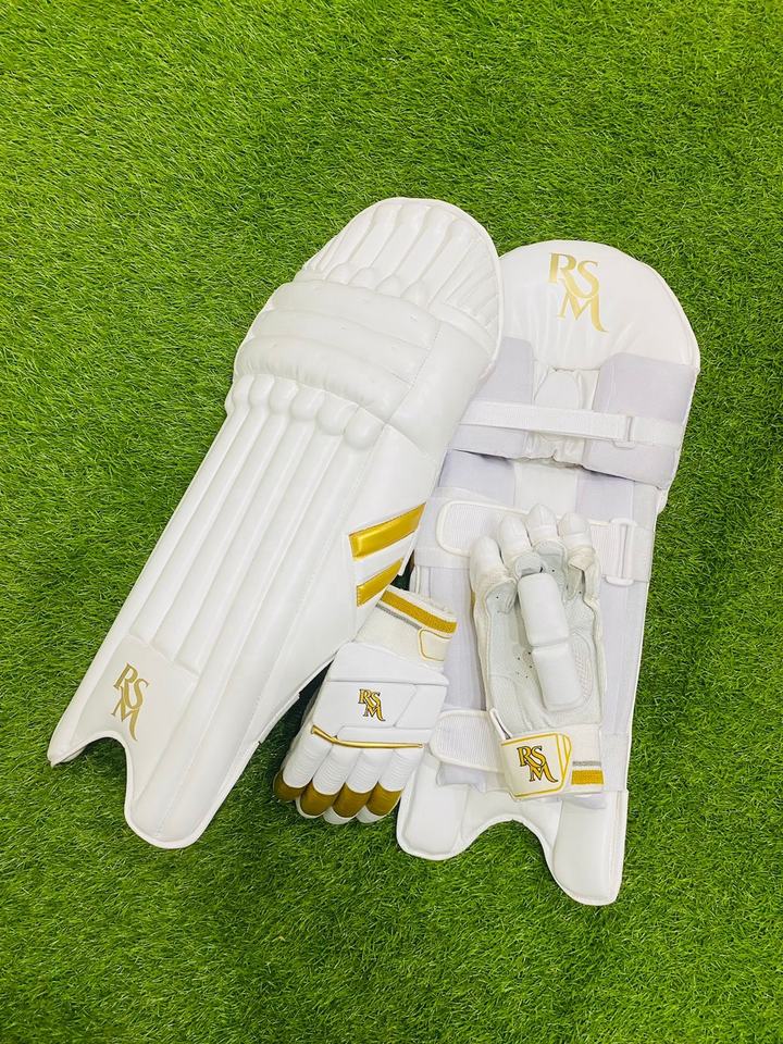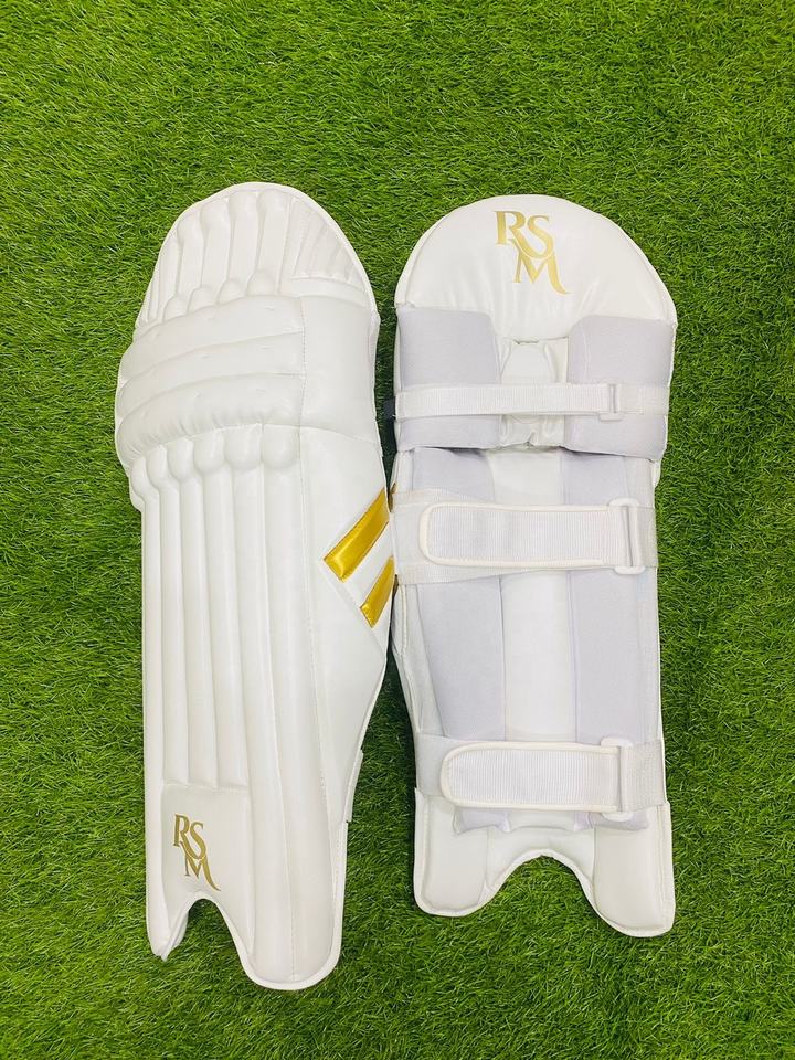 อุปกรณ์คริกเก็ต RSM ป้องกันขาสีทองและสีขาว