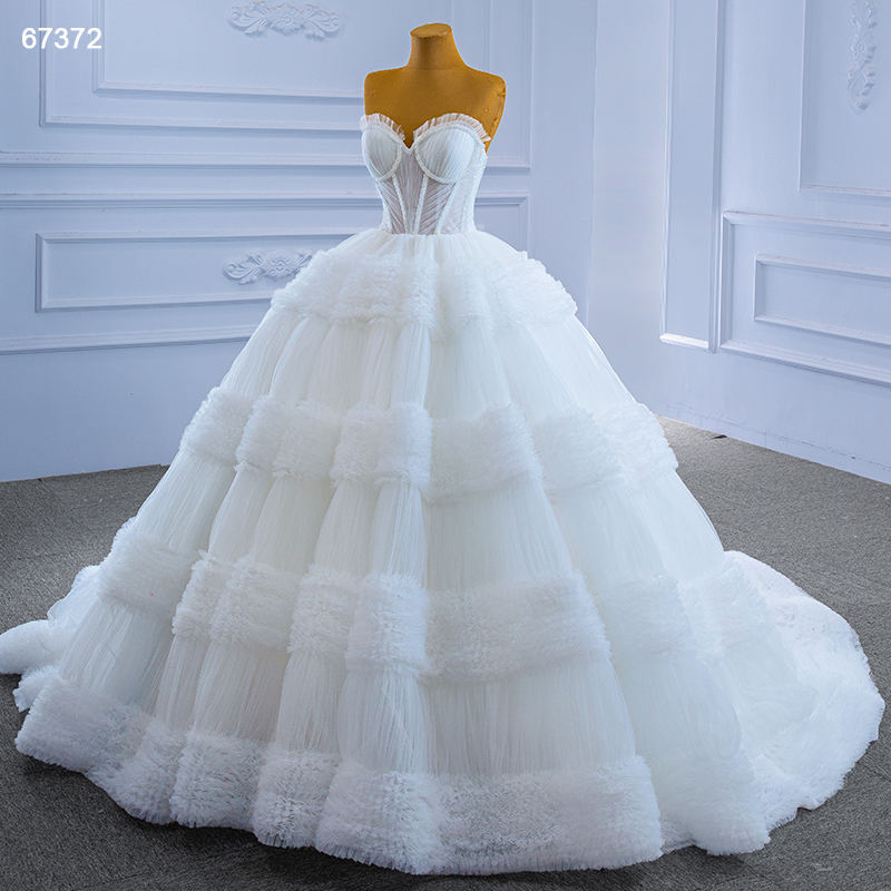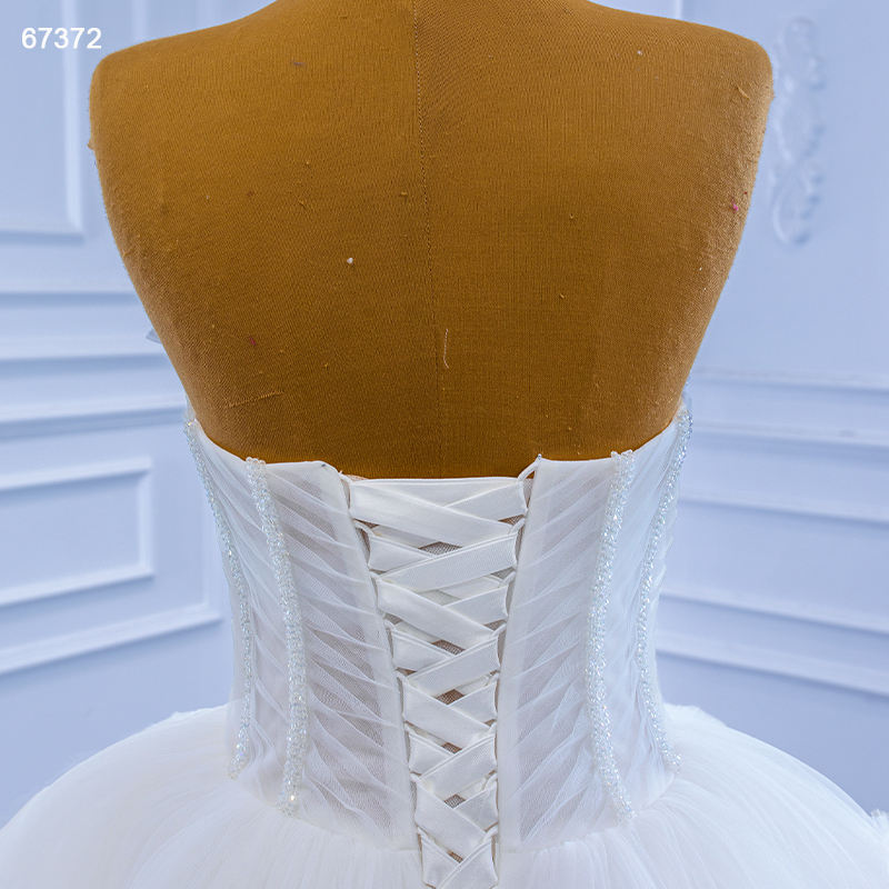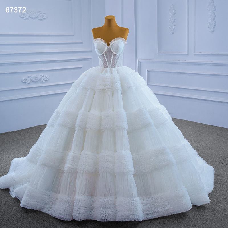 RSM67372 2021 Modern Luxury White Lace Sleeveless Floor-Length Ball Gown Sweetheart Neckline Court Train Embroidery Wedding for