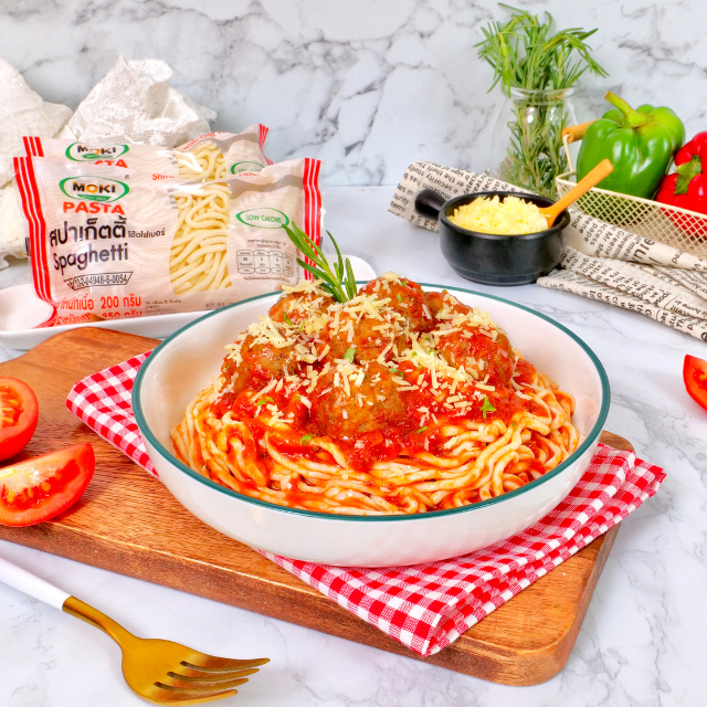 บะหมี่สปาเก็ตตี้บุกที่มีเส้นใยข้าวโอ๊ตชื่อพิเศษ