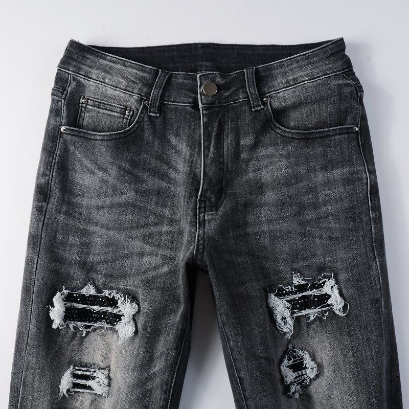 RTS กางเกงยีนส์ผู้ชายผ้ายีนส์เข้ารูปแบบวินเทจฉีกเป็นชิ้นเล็กๆสีฟ้า5638