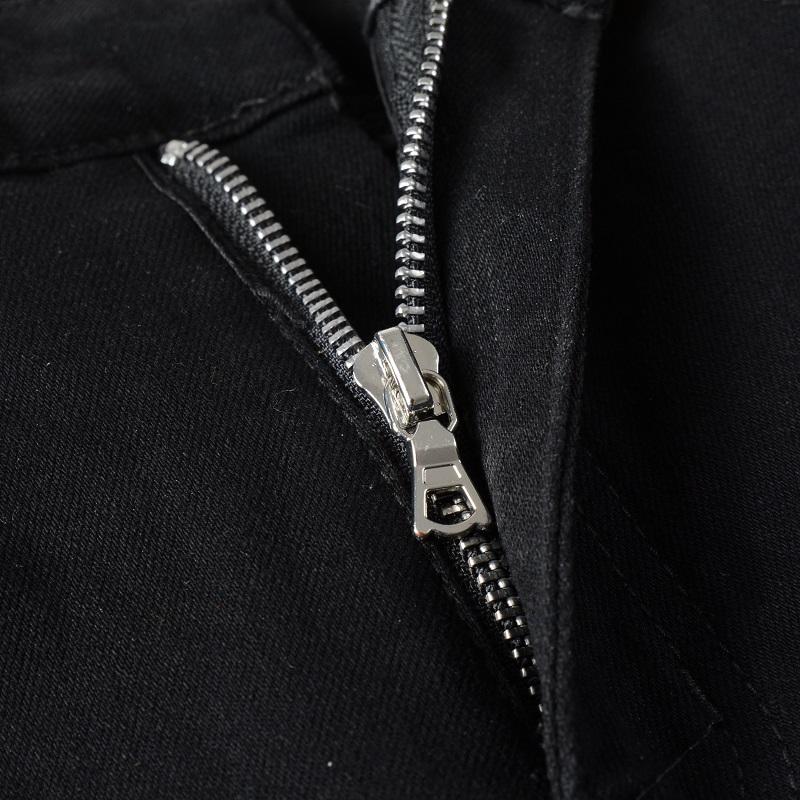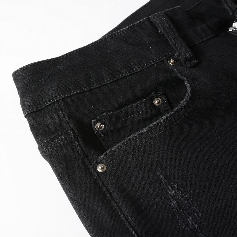 กางเกงยีนส์เข้ารูปปะต่อสีดำแบบสตรีทแฟชั่นขาดกางเกงยีนส์ผ้ายืดขาดสีดำแบบ8595