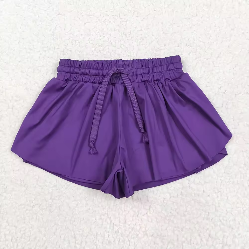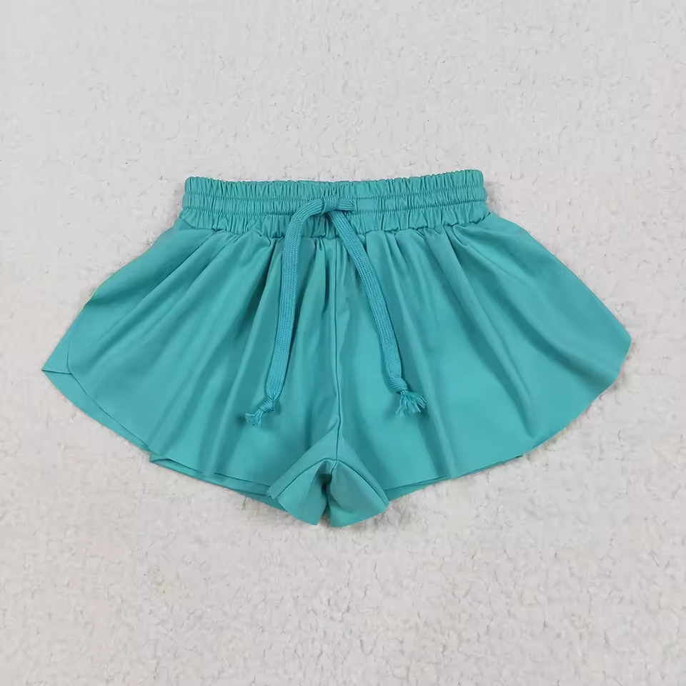 กางเกงขาสั้นโยคะสีพื้น RTS 9 ลายผีเสื้อสำหรับเด็กผู้หญิง เอวยางยืด ระบายอากาศได้ดี