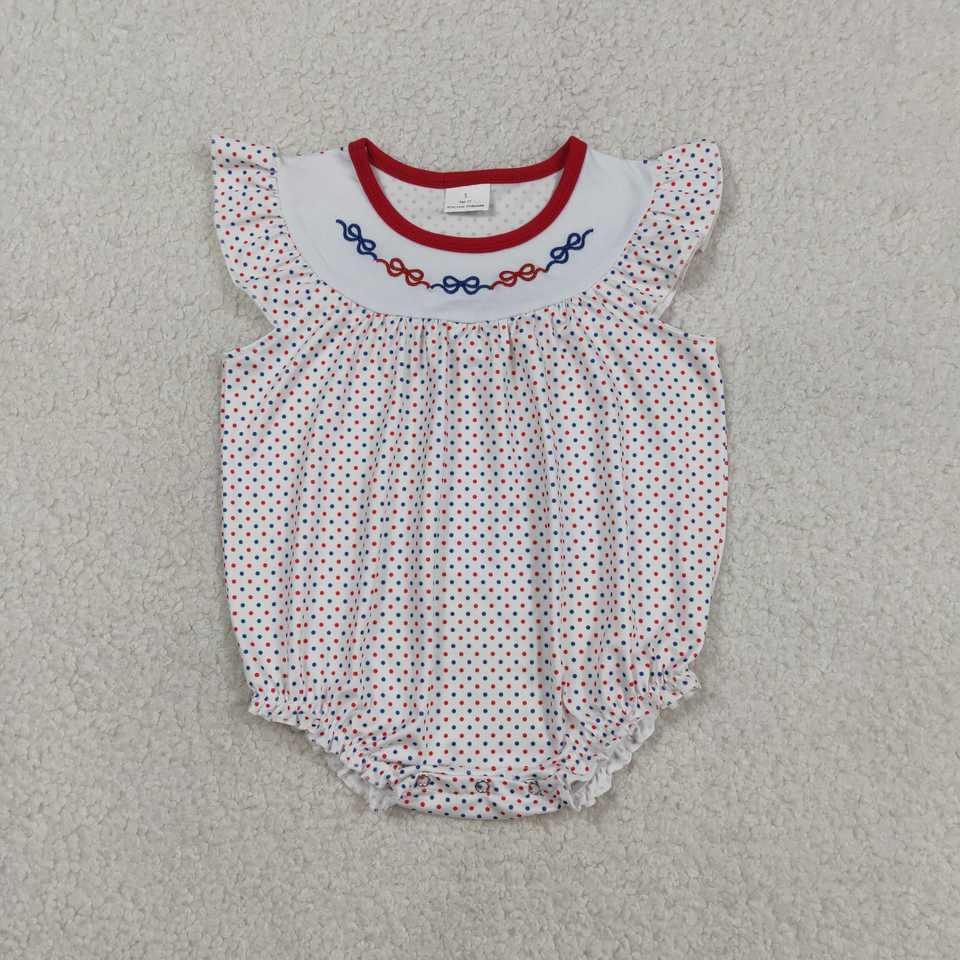 RTS American 4th July Print Worsted Fabric 200-220gsm Cotton Spandex Baby Girls Clothes Toddler Bubble Romper Casual Newborn
