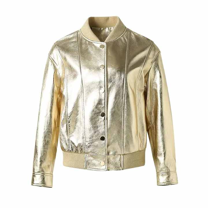 เสื้อแจ็คเก็ตซาตินผู้หญิงพิมพ์โลโก้ตามสั่ง RTS Arrivals แจ็คเก็ตวินเทจ สตรีทแวร์ คลาสสิก ระบายอากาศได้ดี เสื้อคลุมคอโอ