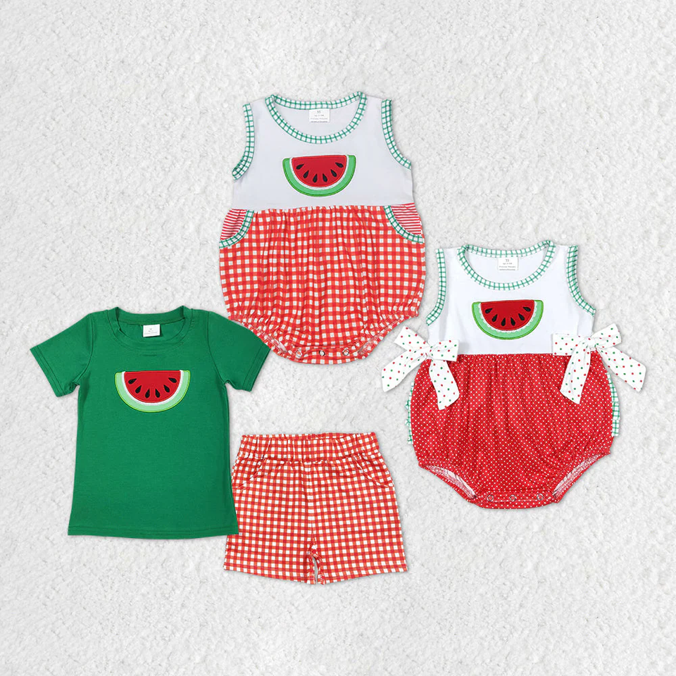 ชุดเสื้อผ้าสำหรับเด็กผู้ชายชุดฤดูร้อนปักลายแตงโมพี่น้องชายจาก RTS