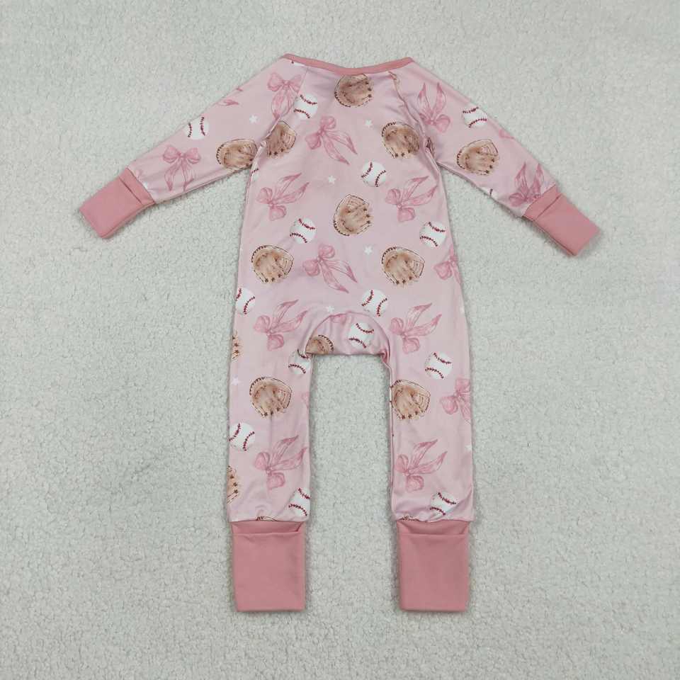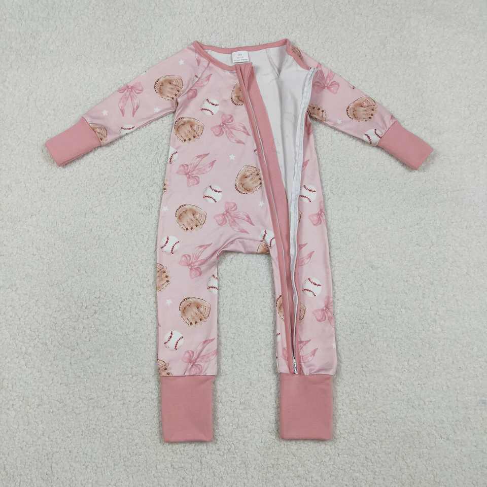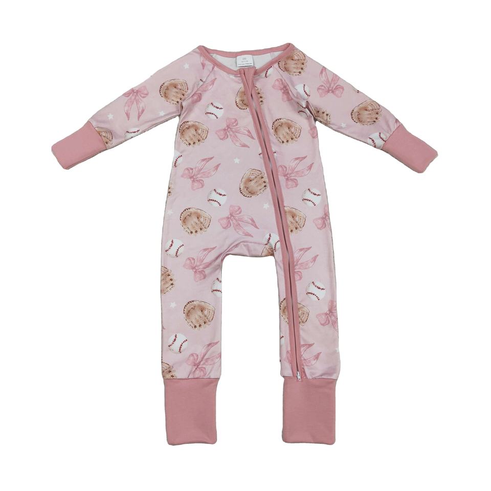 ชุดรอมเปอร์เด็กทารกหญิงลายเบสบอล ผ้าฝ้าย 95% ซิปซ่อน แบบลำลอง สำหรับเด็กทารกและเด็กเล็ก