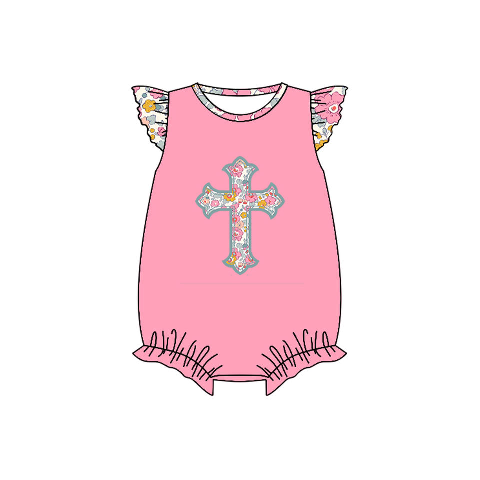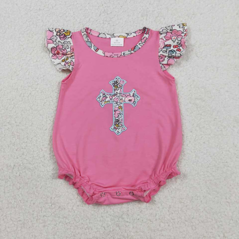 ชุดรอมเปอร์เด็กผู้หญิงแรกเกิด ผ้าฝ้ายผสมสแปนเด็กซ์ ลายดอกไม้สำหรับเทศกาลอีสเตอร์ ลายพิมพ์ "พระองค์ทรงฟื้นคืนชีพ" ผ้าเนื้อนุ่ม สำหรับฤดูใบไม้ผลิ/ฤดูใบไม้ร่วง