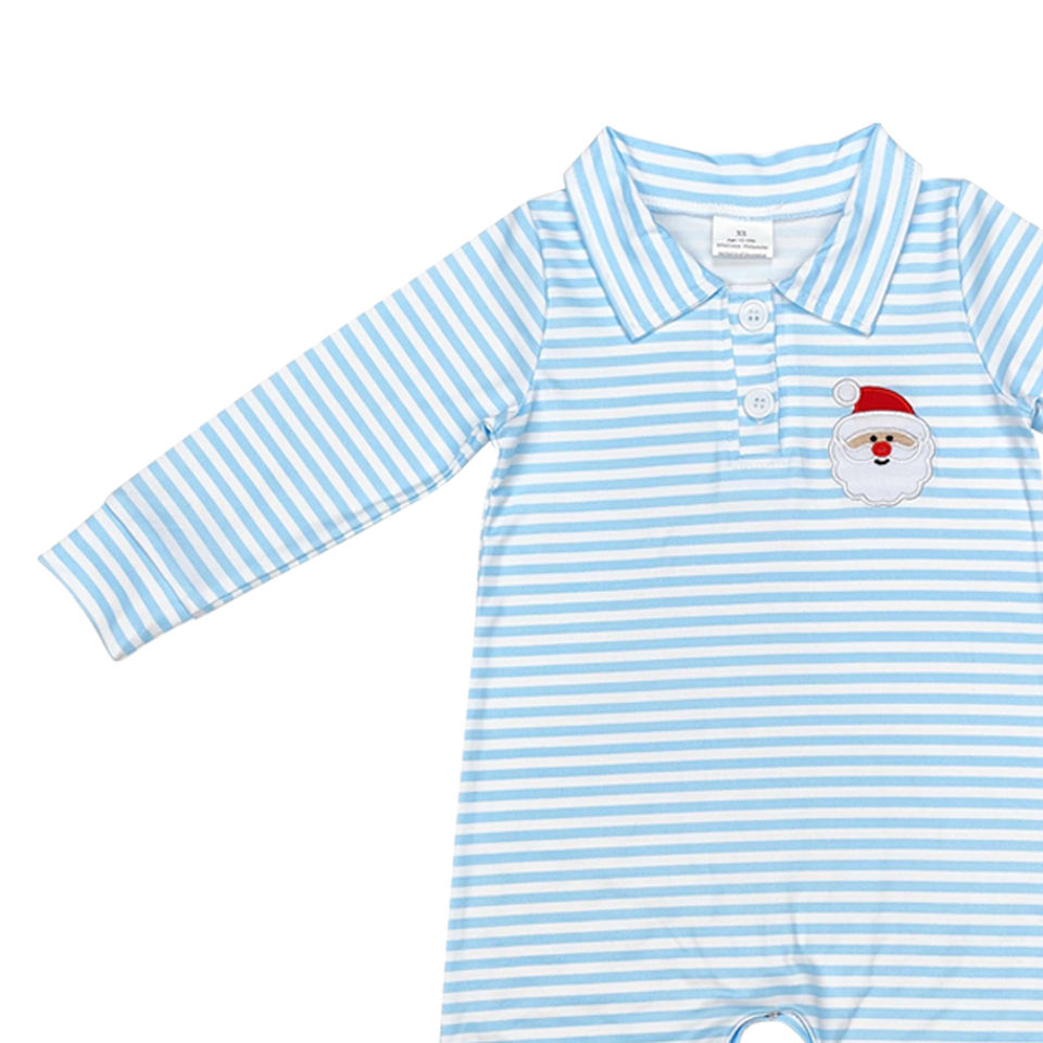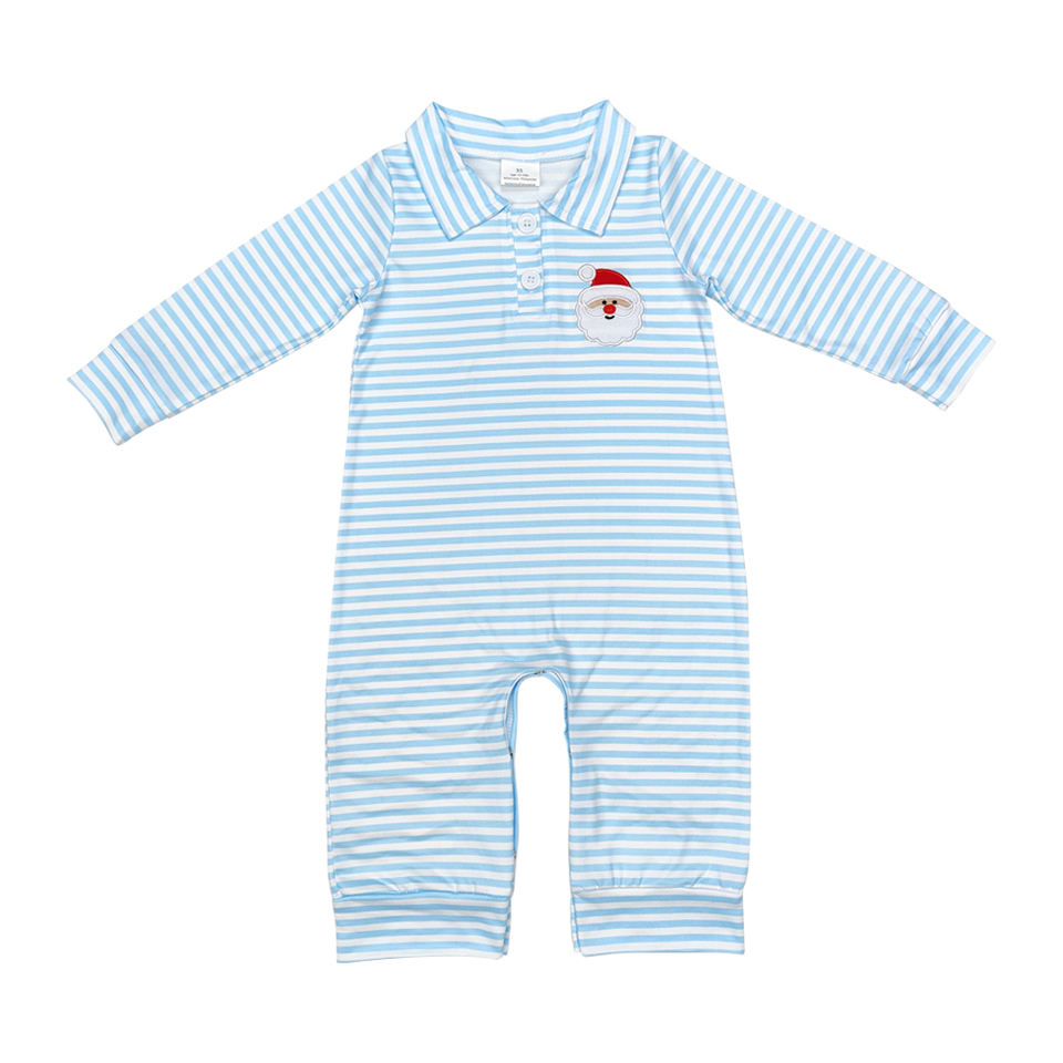 RTS ชุดหมีแขนยาวปักลายซานตาคลอสสีฟ้าสำหรับเด็กทารกเด็กผู้ชายชุดหมีขายส่งสำหรับเด็ก
