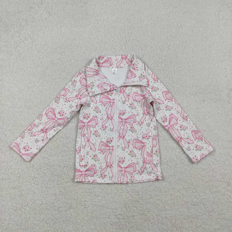 RTS เสื้อโค้ทกางเกงสองชิ้นแบบมีซิปผูกโบว์ดอกไม้สำหรับเด็กเสื้อผ้าสำหรับเล่นโยคะชุดสำหรับเด็กขายส่ง