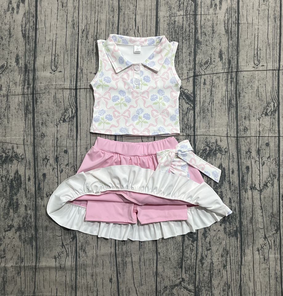 เสื้อเชิ้ตเด็กผู้หญิงลายดอกไม้โบว์ RTS Boutique ผ้าฝ้ายผสมสแปนเด็กซ์ ระบายอากาศได้ดี พร้อมกระโปรงสั้นซับใน ชุดลำลองสำหรับฤดูใบไม้ผลิ