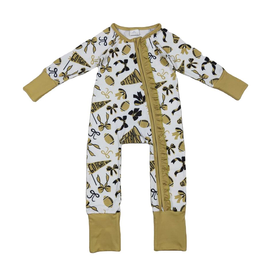 RTS ชุดหมีขาสั้นมีซิปสำหรับทีมฟุตบอลบูติกชุดนอนเด็กวัยหัดเดินแบบมีซิปชุดนอนมีระบายสำหรับวันเล่นเกมขายส่ง