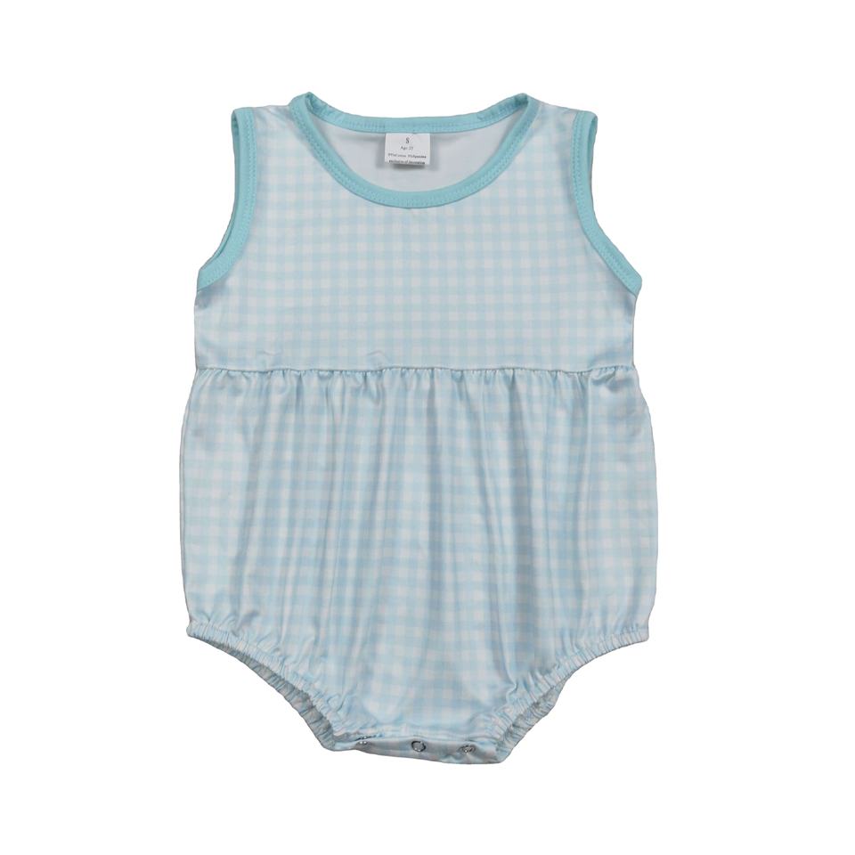 ชุดรอมเปอร์เด็กผู้หญิงลายสก็อตสีฟ้าอ่อน RTS Boutique ผ้าคอตตอนผสมสแปนเด็กซ์ 95% พิมพ์ลายบนผ้า Worsted น้ำหนัก 200-220 กรัม/ตร.ม. สำหรับเด็กแรกเกิด