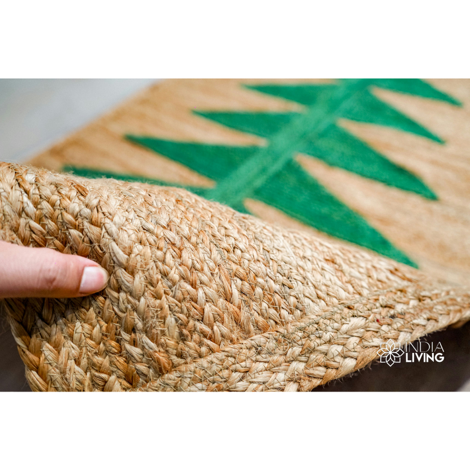 พรมปูพื้นรูปต้นคริสต์มาสแบบถักจากเส้นใยปอกระเจา RTS | เสื่อใยธรรมชาติจากปอกระเจาสำหรับตกแต่งวันหยุด ขายส่ง
