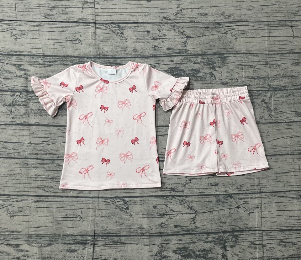 ชุดเสื้อยืดและกางเกงขาสั้นเด็กผู้หญิง RTS Coquette Bows ผ้าฝ้าย 95% ผสมสแปนเด็กซ์ 5% ระบายอากาศได้ดี สวมใส่สบาย ลายพิมพ์น่ารัก ชุดเซ็ต 2 ชิ้น สำหรับฤดูใบไม้ผลิและฤดูใบไม้ร่วง