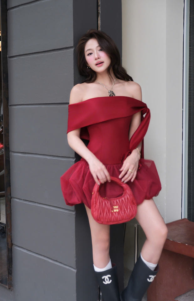 RTS Dress Off Shoulder Puffy Skirt Dress Elegant Cute Korean Style Party Casual Dress For Women Girls Summer Fashion Coshe Julia
